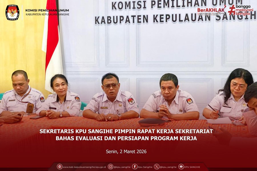 Tahuna, kab-kepulauansangihe.kpu.go.id – Komisi Pemilihan Umum (KPU) Kabupaten Kepulauan Sangihe melaksanakan Rapat Pleno Rutin pada Selasa, 3 Maret 2026, bertempat di Ruang Rapat KPU Sangihe. Kegiatan ini dihadiri oleh Ketua dan Anggota KPU Sangihe, Sekretaris, para Kepala Sub Bagian, serta jajaran Jabatan Fungsional di lingkungan KPU Sangihe. Rapat pleno rutin merupakan forum pengambilan keputusan dan konsolidasi internal yang dilaksanakan secara berkala guna memastikan seluruh pelaksanaan tugas dan fungsi kelembagaan berjalan sesuai dengan ketentuan peraturan perundang-undangan. Dalam rapat tersebut, jajaran KPU Sangihe melakukan evaluasi terhadap berbagai kegiatan yang telah dilaksanakan pada bulan sebelumnya, baik dari sisi teknis penyelenggaraan maupun dukungan kesekretariatan. Selain evaluasi, rapat juga membahas penyusunan dan penajaman program kerja dari masing-masing divisi serta sekretariat untuk periode berjalan. Setiap divisi memaparkan rencana kegiatan yang akan dilaksanakan, termasuk langkah-langkah strategis dalam mendukung pelaksanaan tugas KPU secara efektif, efisien, dan akuntabel. Ketua KPU Sangihe dalam arahannya menegaskan pentingnya koordinasi dan sinergi antar divisi serta sekretariat agar setiap program kerja dapat terlaksana secara optimal dan tepat sasaran. Ia juga mengingatkan seluruh jajaran untuk terus menjaga integritas, profesionalitas, dan komitmen pelayanan kepada masyarakat. Bagi masyarakat, rapat pleno rutin ini merupakan bagian dari upaya KPU dalam memastikan setiap program kerja direncanakan dengan matang, dievaluasi secara berkala, serta dilaksanakan secara transparan dan bertanggung jawab. Dengan demikian, kinerja KPU sebagai lembaga penyelenggara pemilu dapat terus terjaga dan memberikan kepastian pelayanan publik di bidang kepemiluan. Melalui rapat pleno rutin ini, KPU Sangihe berkomitmen untuk terus meningkatkan kualitas tata kelola kelembagaan serta memperkuat kesiapan organisasi dalam melaksanakan tugas-tugas kepemiluan ke depan. ....
