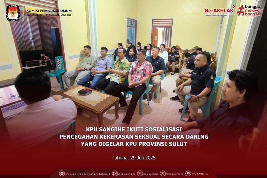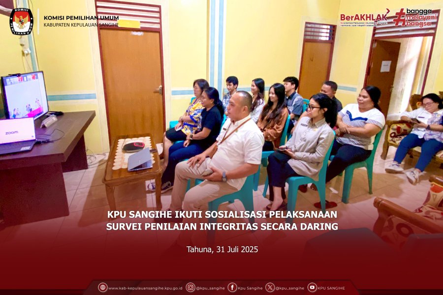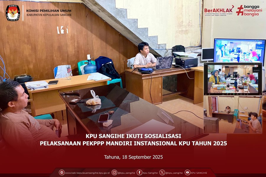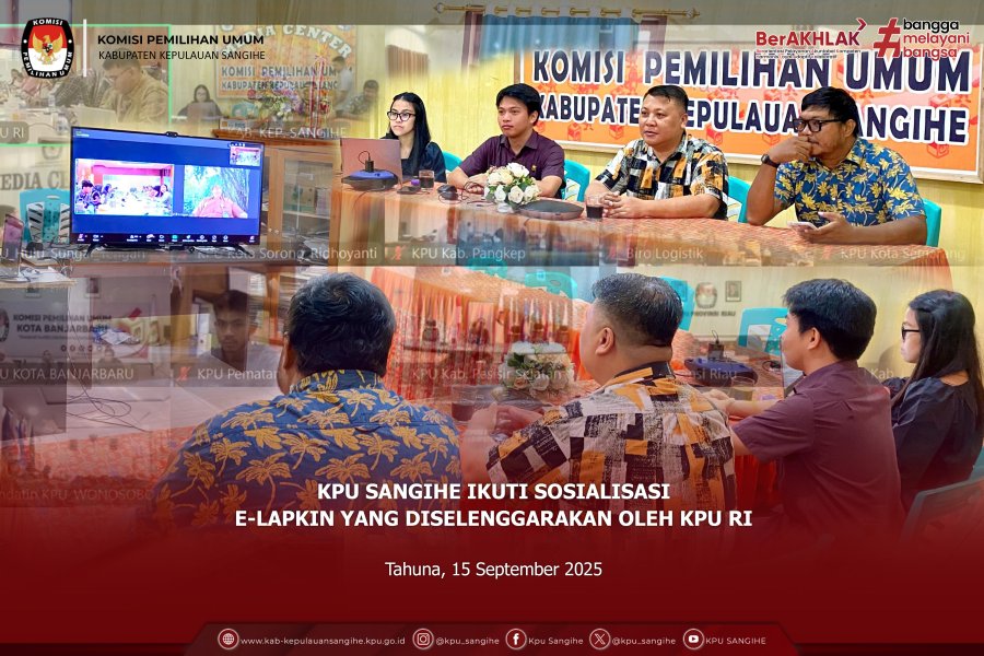 Tahuna, kab-kepulauansangihe.kpu.go.id – Komisi Pemilihan Umum (KPU) Kabupaten Kepulauan Sangihe mengikuti Sosialisasi Aplikasi E-Lapkin yang diselenggarakan oleh KPU Republik Indonesia secara daring pada Senin, 15 September 2025. Kegiatan ini diikuti oleh jajaran KPU Provinsi/KIP Aceh, yakni Sekretaris, Kepala Bagian Perencanaan, Data dan Informasi, Kepala Sub Bagian Perencanaan, serta Operator. Sementara dari KPU/KIP Kabupaten/Kota diikuti oleh Sekretaris, Kepala Sub Bagian Perencanaan dan Data, serta Operator. Adapun KPU Kabupaten Kepulauan Sangihe mengikuti kegiatan ini dari Ruang Rapat KPU Sangihe, dengan dihadiri oleh Plt. Sekretaris Bpk. Jelly Kantu, Operator serta Staff Terkait. Sosialisasi ini merupakan tindak lanjut dari rekomendasi hasil evaluasi Akuntabilitas Kinerja Instansi Pemerintah (AKIP) KPU Tahun 2024 oleh Kementerian Pendayagunaan Aparatur Negara dan Reformasi Birokrasi (Kemenpan RB) Republik Indonesia, yang menekankan pentingnya pemantauan kinerja organisasi dilakukan secara real time dengan memanfaatkan teknologi informasi. Sebagai bentuk implementasi atas rekomendasi tersebut, KPU RI telah mengembangkan Aplikasi E-Lapkin yang akan digunakan sebagai tools pemantauan kinerja organisasi di seluruh tingkatan, mulai dari KPU RI, KPU Provinsi/KIP Aceh hingga KPU/KIP Kabupaten/Kota. Melalui aplikasi ini, diharapkan kinerja kelembagaan KPU dapat termonitor lebih cepat, transparan, dan akuntabel sesuai standar yang ditetapkan.