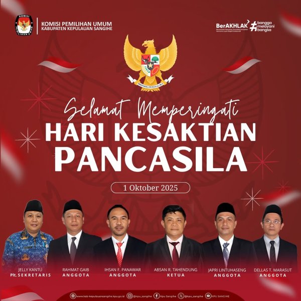 Segenap jajaran KPU Sangihe mengucapkan selamat memperingati Hari Kesaktian Pancasila 2025.