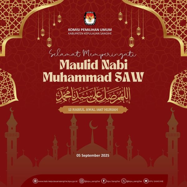 Segenap keluarga besar KPU Sangihe mengucapkan Selamat Memperingati Maulid Nabi Muhammad SAW, 12 Rabiul Awal 1447 H / 5 September 2025.