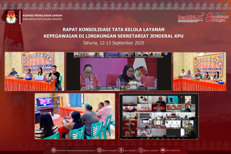 Tahuna, kab-kepulauansangihe.kpu.go.id - Komisi Pemilihan Umum (KPU) Kabupaten Kepulauan Sangihe mengikuti Rapat Konsolidasi Tata Layanan Kepegawaian dengan Badan Kepegawaian Negara (BKN) di lingkungan Setjen KPU Tahun 2025 yang diselenggarakan sejak Jumat hingga Sabtu, 12–13 September 2025.