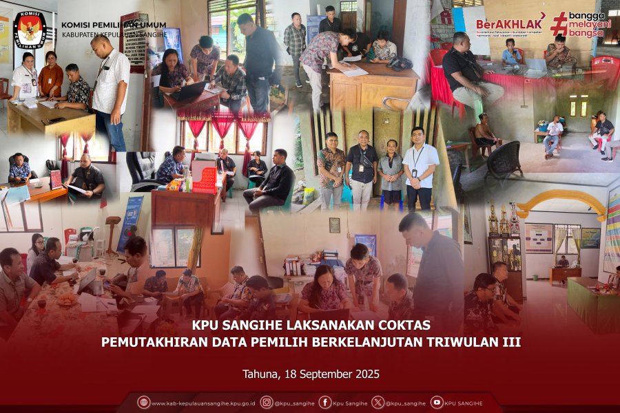 Melalui kegiatan COKTAS, KPU Sangihe menegaskan komitmennya untuk terus menjaga integritas dan kualitas data pemilih sebagai salah satu pilar penting dalam mewujudkan demokrasi yang berkualitas di Kabupaten Kepulauan Sangihe.