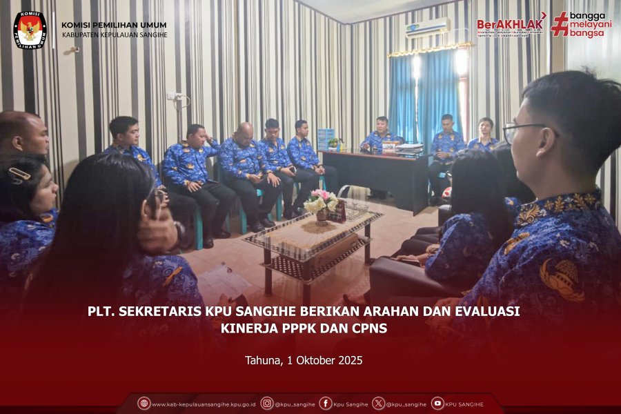 Plt. Sekretaris menegaskan bahwa seluruh aparatur, baik PPPK maupun CPNS, memiliki peran penting dalam mendukung kinerja kelembagaan. Dengan disiplin, tanggung jawab, dan semangat kolaborasi, seluruh pegawai diharapkan dapat berkontribusi dalam mewujudkan KPU Sangihe sebagai lembaga yang profesional, transparan, dan berintegritas.