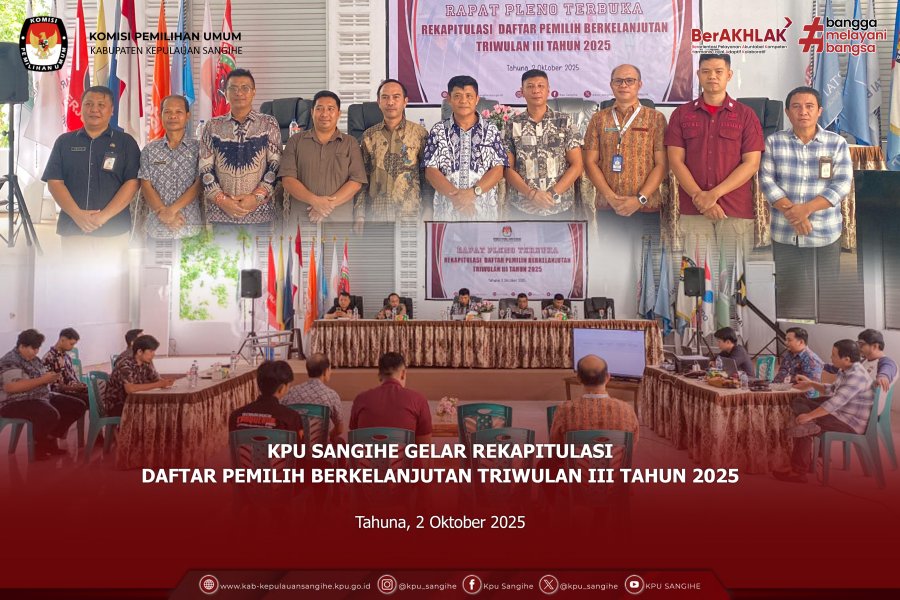 Melalui rekapitulasi ini, KPU Sangihe menegaskan komitmennya untuk terus melakukan pemutakhiran data pemilih secara berkelanjutan. Hal ini merupakan bagian dari ikhtiar menjaga integritas penyelenggaraan pemilu serta menjamin hak pilih masyarakat Kabupaten Kepulauan Sangihe.