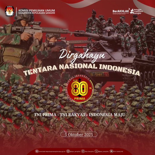Tahuna, kab-kepulauansangihe.kpu.go.id - Segenap jajaran KPU Sangihe mengucapkan Dirgahayu TNI ke-80 Tahun 2025.