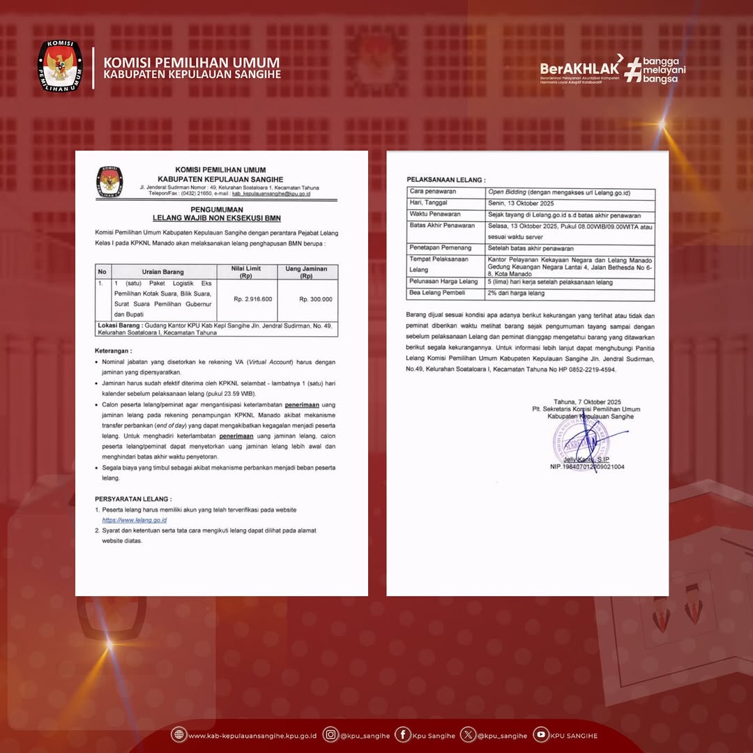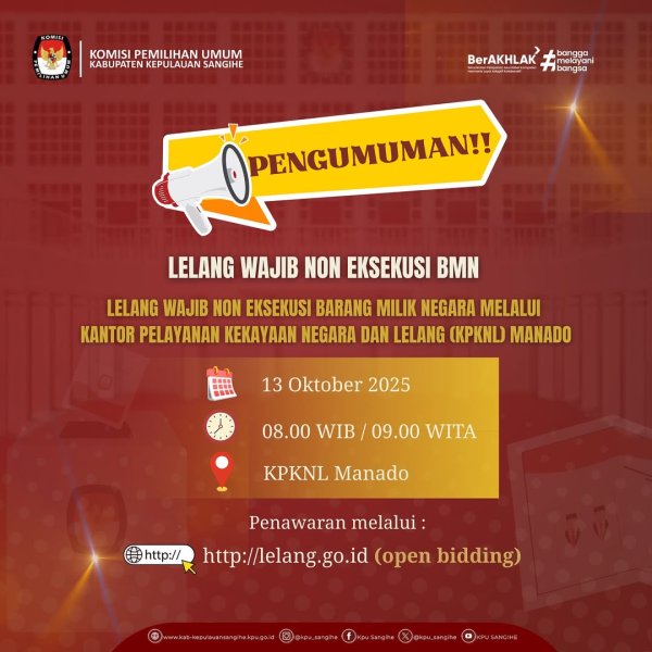 KPU Sangihe melaksanakan Lelang Wajib Non Eksekusi BMN melalui perantara Pejabat Lelang Kelas I KPKNL Manado