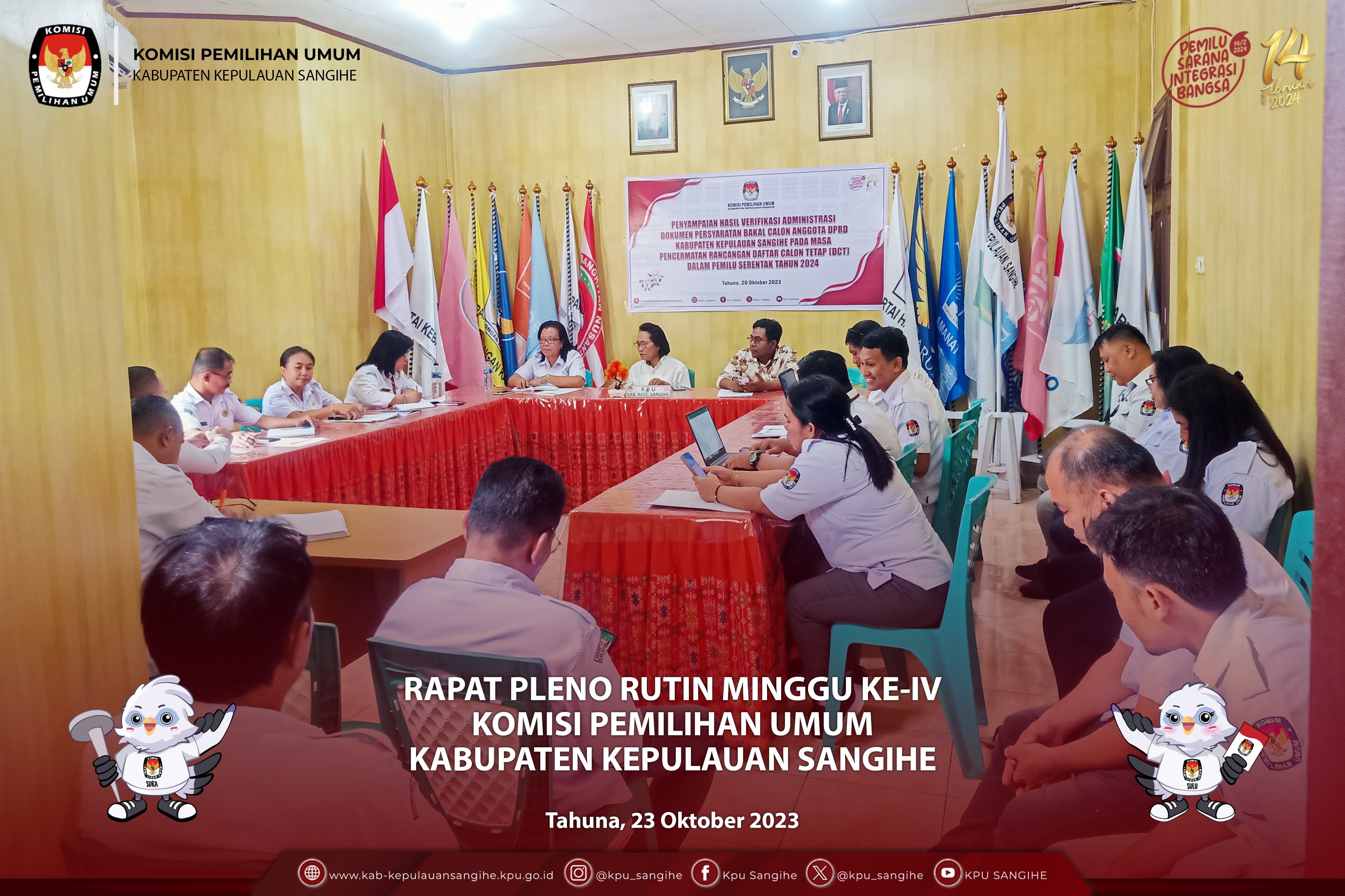 Tahuna, kab-kepulauansangihe.kpu.go.id - dalam rangka Perencanaan dan Evaluasi kegiatan selama seminggu berjalan, KPU Sangihe melaksanakan Rapat Pleno Rutin Minggu ke-IV. Senin (23/10/2023).