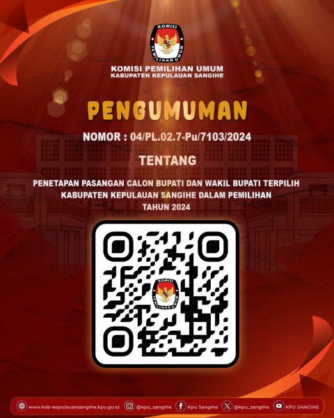 Pengumuman Tentang Penetapan Pasangan Calon Bupati dan Wakil Bupati Terpilih Kabupaten Kepulauan Sangihe Dalam Pemilihan Tahun 2024