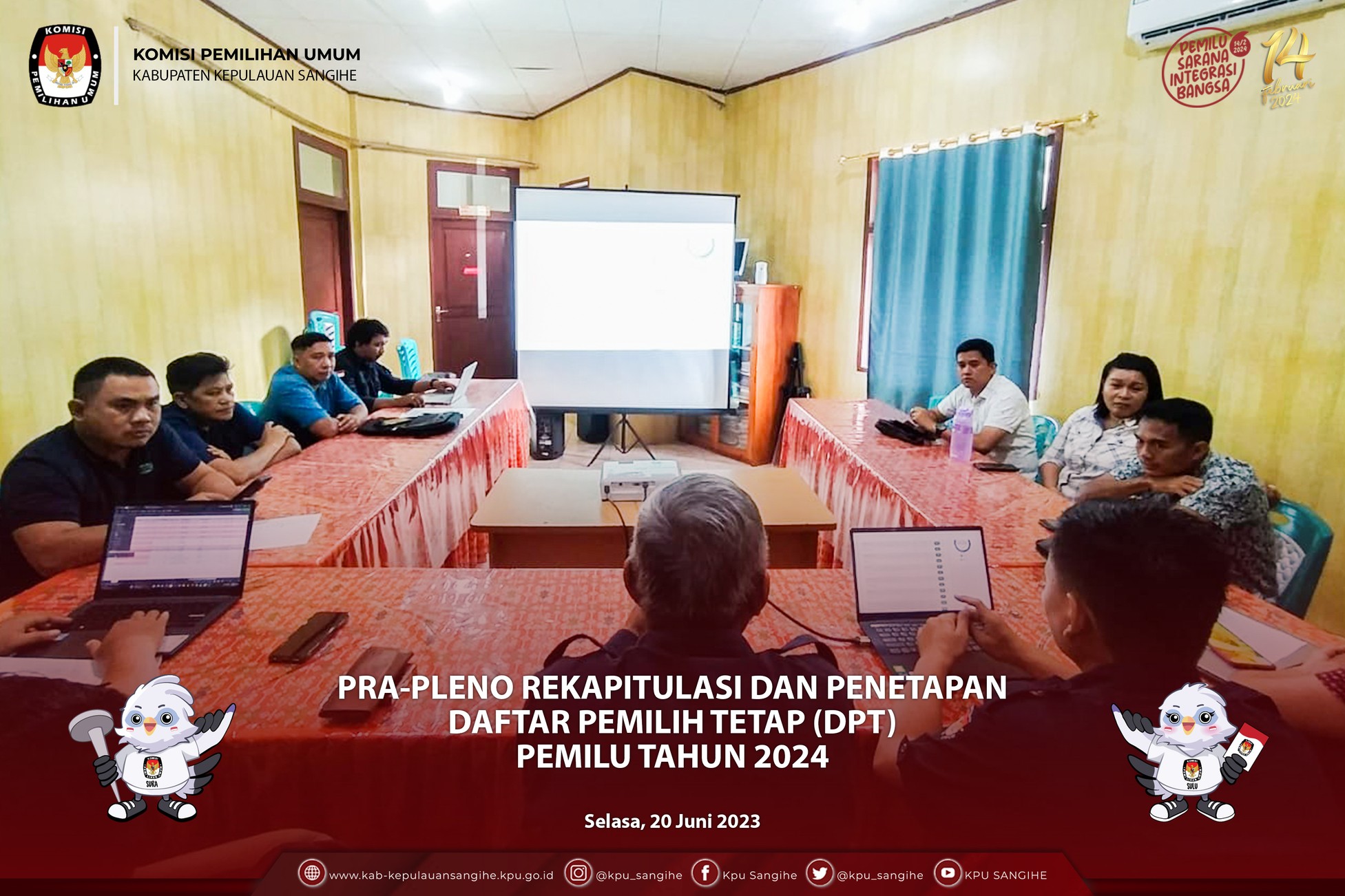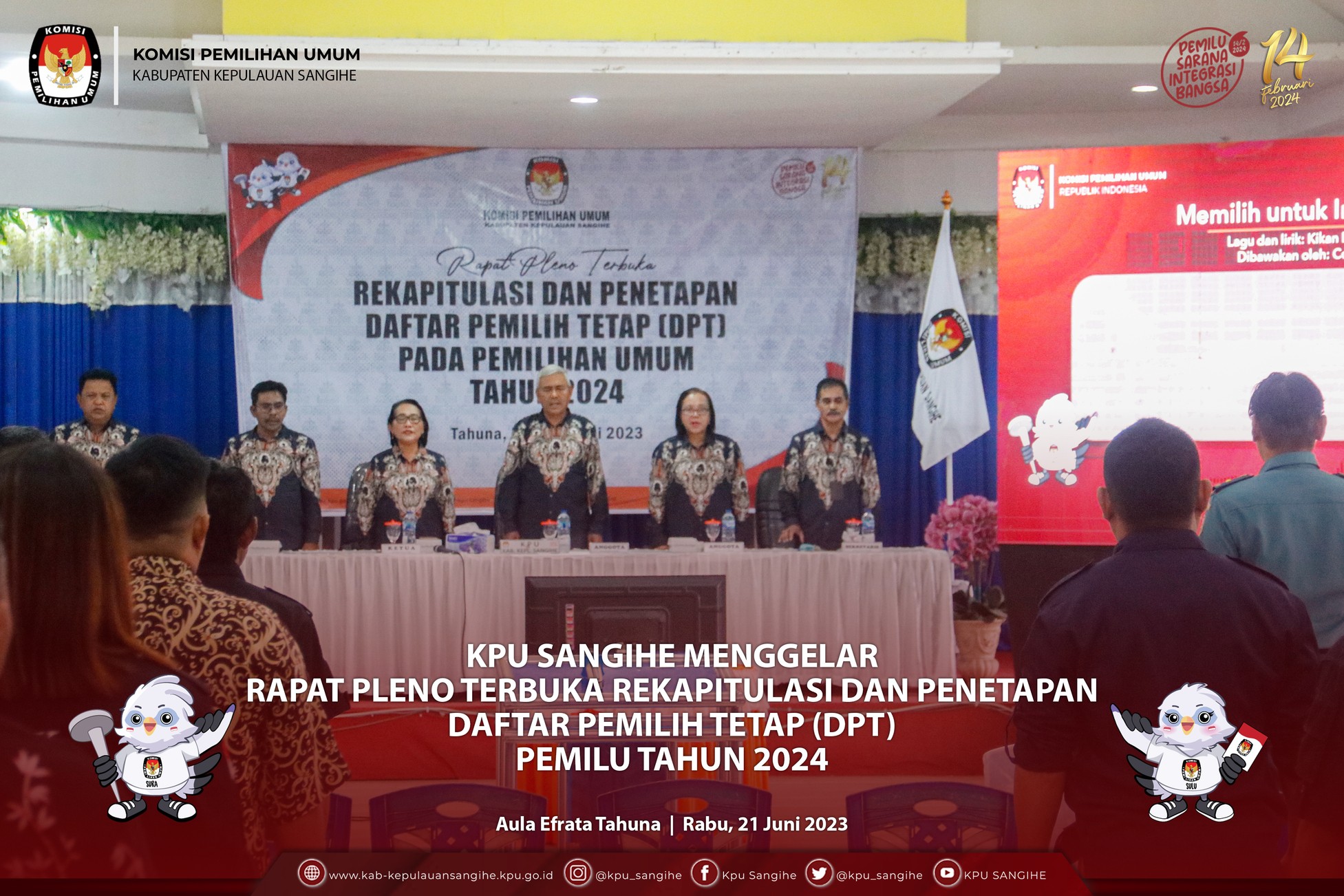 #TemanPemilih, KPU Sangihe telah menggelar Rapat Pleno Terbuka Rekapitulasi dan Penetapan Daftar Pemilih Tetap (DPT) Pada Pemilu Tahun 2024. di Aula Efrata Tahuna, Rabu (21/6/2023).