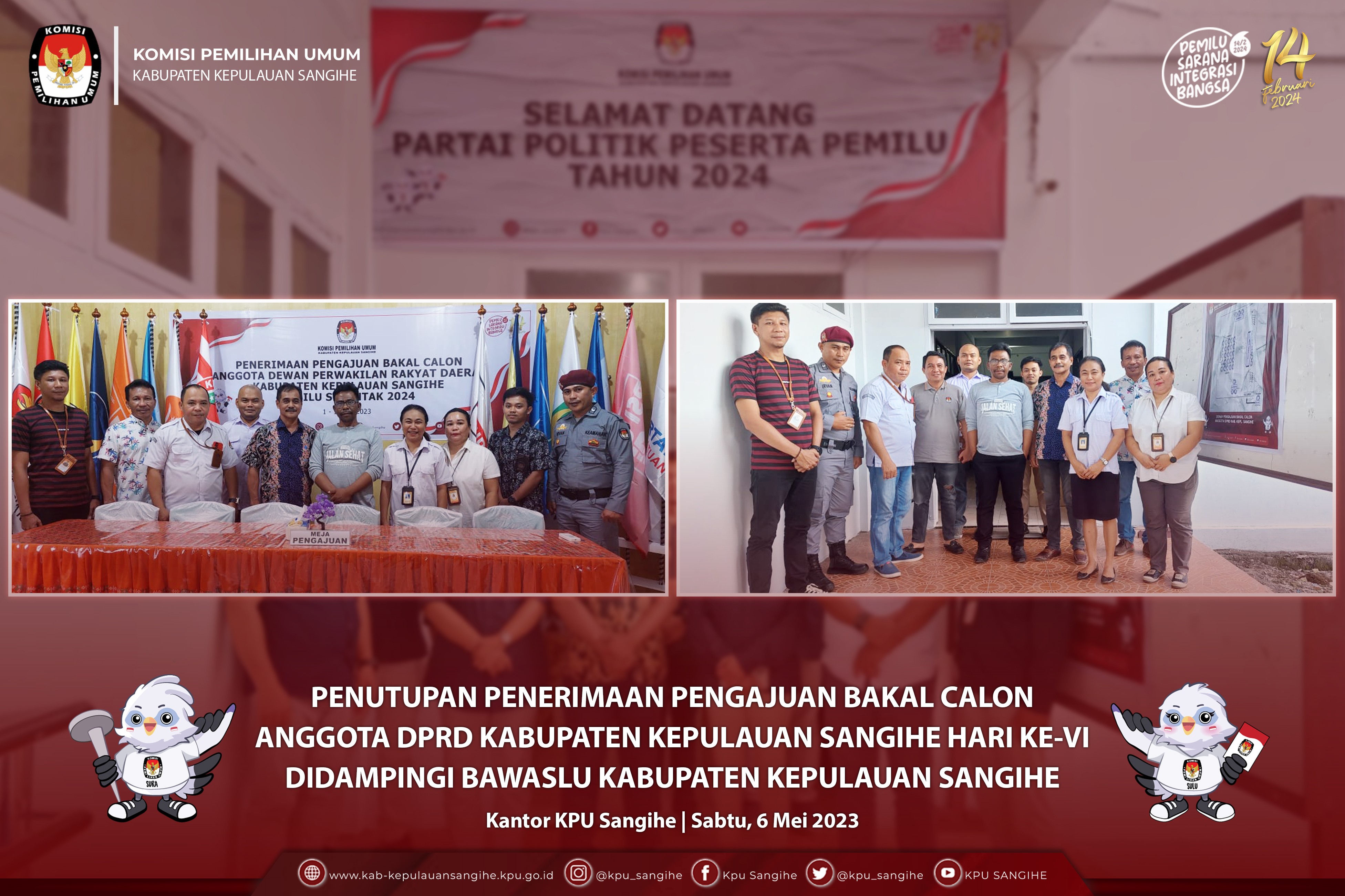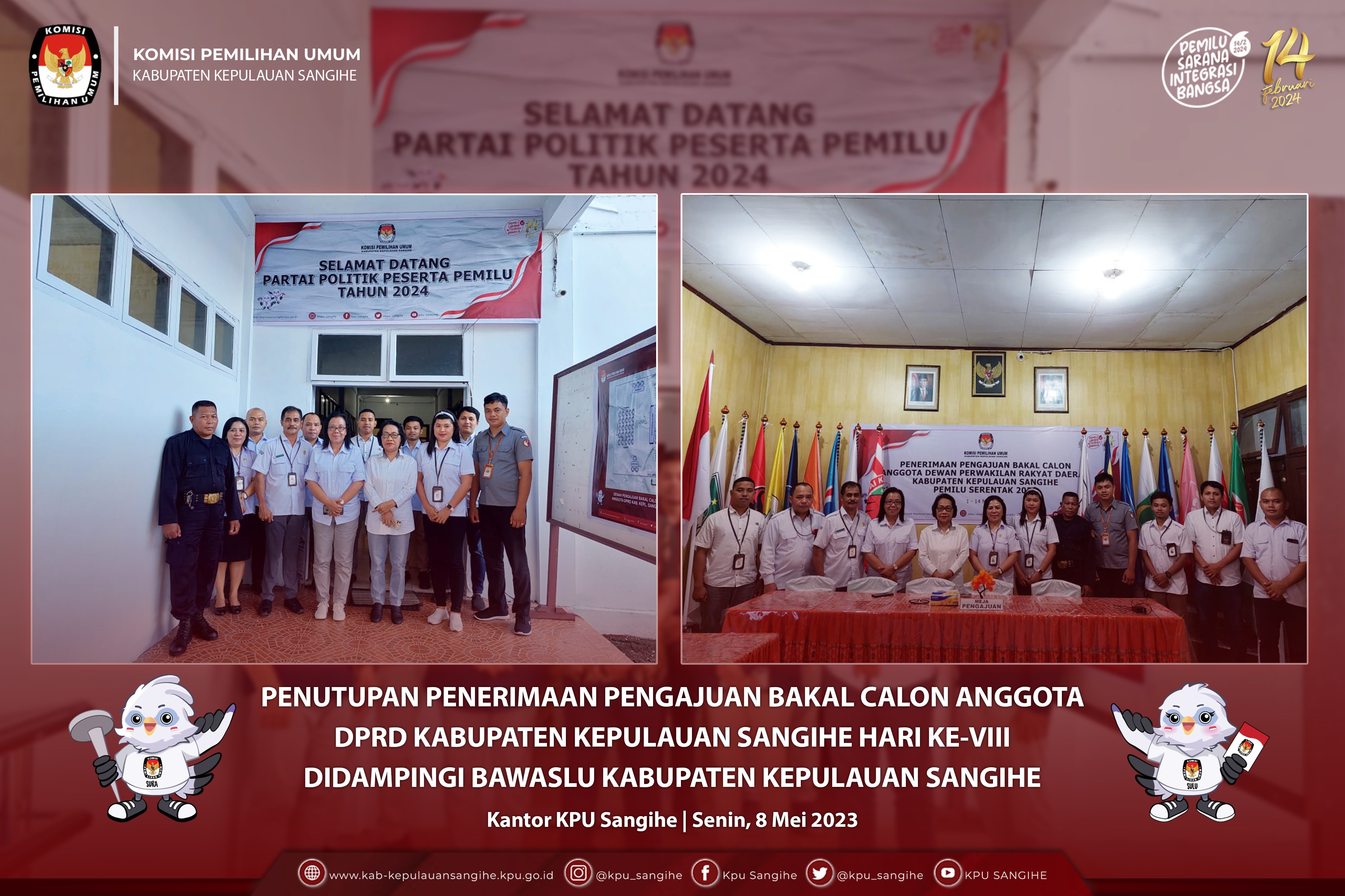 #TemanPemilih, Penutupan Penerimaan Pengajuan Bakal Calon Anggota DPRD Kabupaten Kepulauan Sangihe Hari Ke-VIII di dampingi Bawaslu Kabupaten Kepulauan Sangihe. Kantor KPU Sangihe, Senin (8-5-2023).