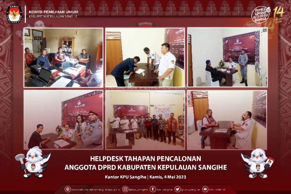 Kamis, 4 Mei 2023 KPU Kabupaten Kepulauan Sangihe memberikan pelayanan informasi terkait pencalonan anggota DPRD kepada Aliansi Aktivis Nusa Utara, Partai PKS & Partai PDIP di ruangan Helpdesk.