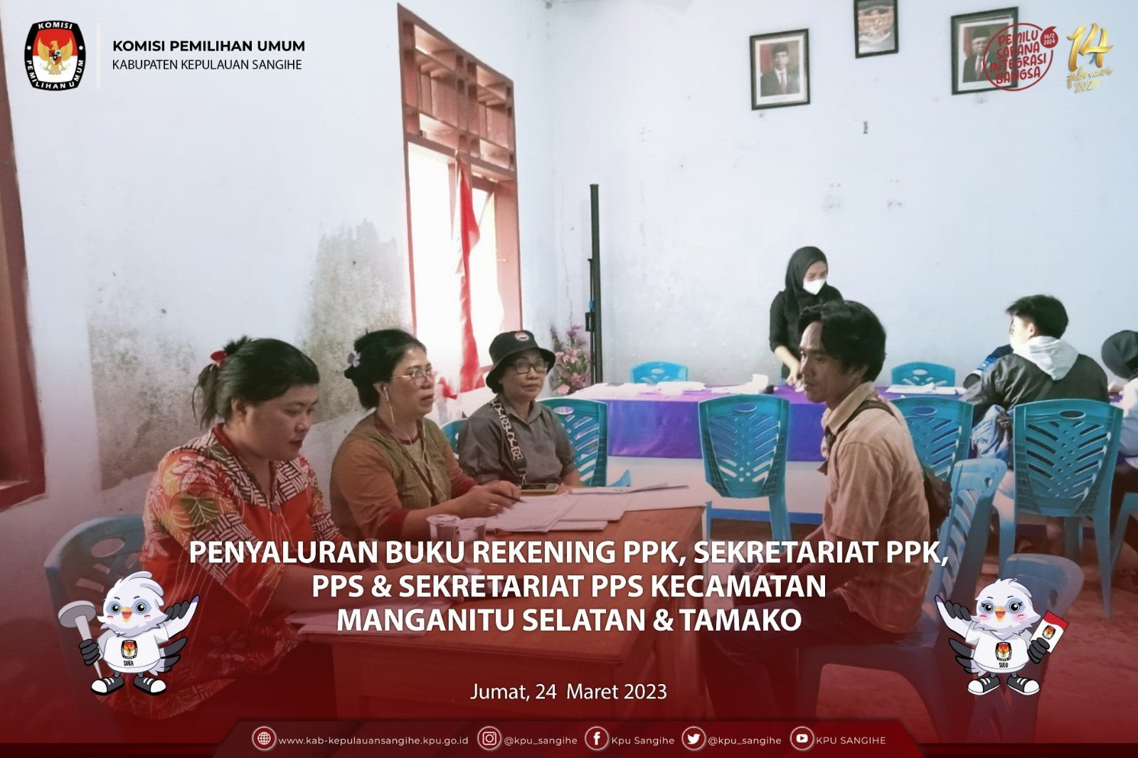 #TemanPemilih, KPU Sangihe melakukan Penyaluran Buku Rekening untuk PPK, Sekretariat PPK, PPS & Sekretariat PPS di Kecamatan Manganitu Selatan & Tamako. Jumat (24/3/2023).