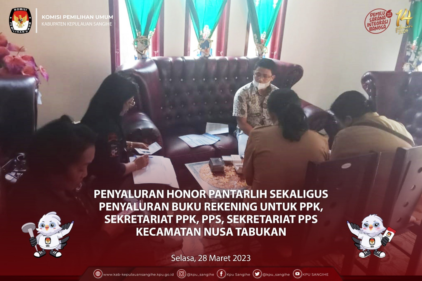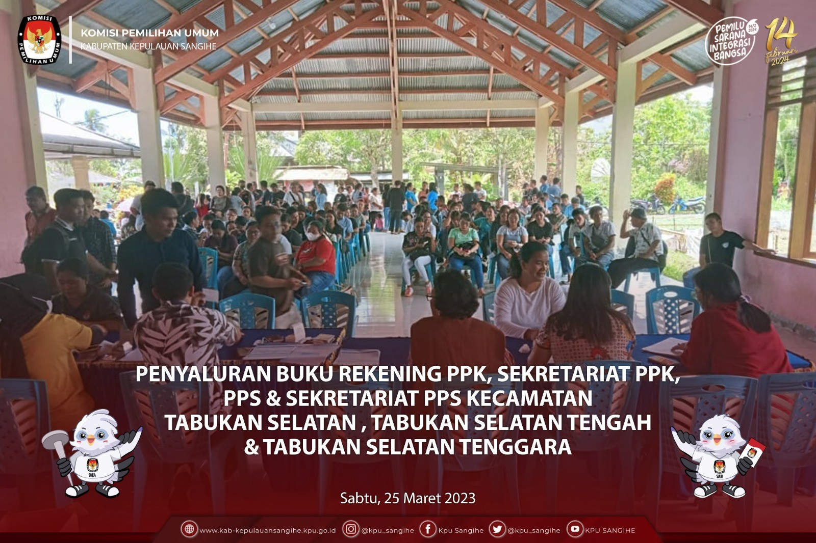 #TemanPemilih, KPU Sangihe melakukan Penyaluran Honor Pantarlih sekaligus Penyaluran Buku Rekening untuk PPK, Sekretariat PPK, PPS & Sekretariat PPS Kecamatan Nusa Tabukan. Selasa (28/3/2023).