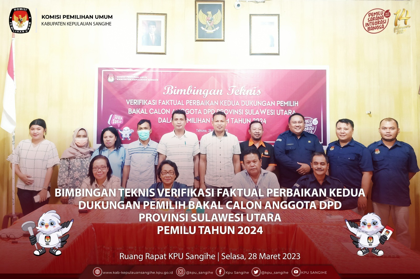 #TemanPemilih, KPU Sangihe melakukan Bimbingan Teknis Verifikasi Faktual Perbaikan Kedua Dukungan Pemilih Bakal Calon Anggota DPD Provinsi Sulawesi Utara Dalam Pemilu 2024 kepada PPK Tabukan Utara dan PPS Likuang di Ruang Rapat KPU Sangihe. Selasa (28/3/2023).