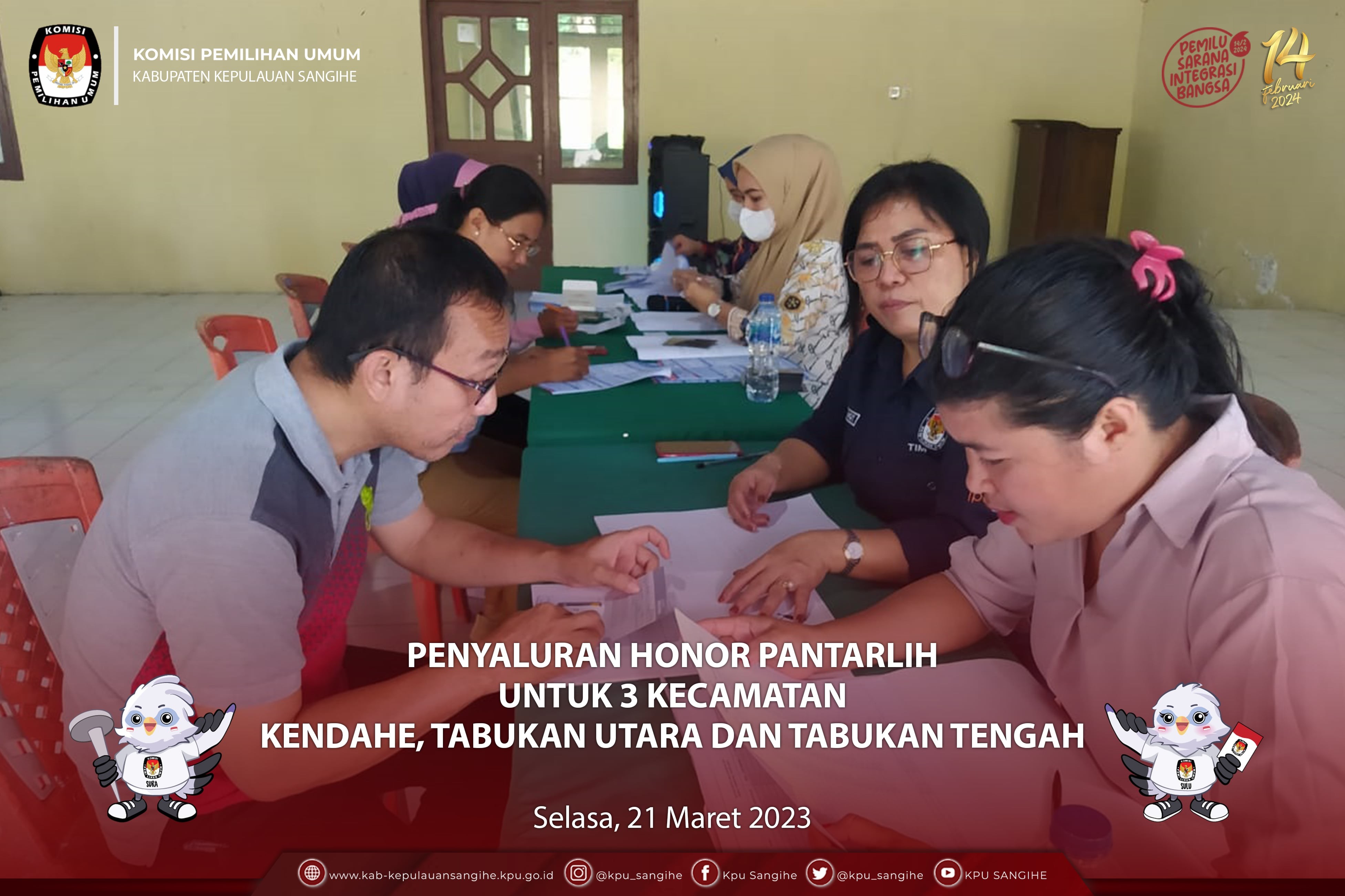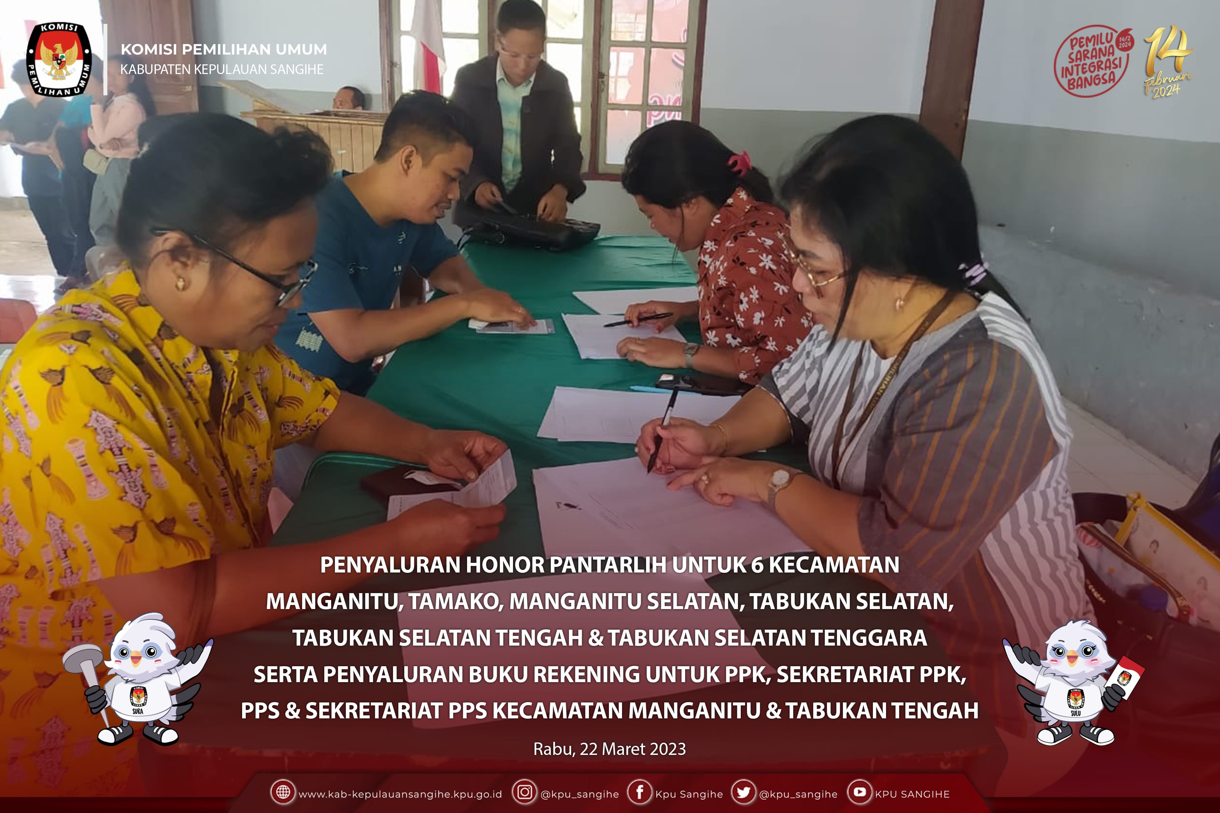 #TemanPemilih, KPU Sangihe melakukan Penyaluran Honor Pantarlih untuk 6 kecamatan: Manganitu, Tamako, Manganitu Selatan, Tabukan Selatan, Tabukan Selatan Tengah & Tabukan Selatan Tenggara serta Penyaluran Buku Rekening untuk PPK, Sekretariat PPK, PPS & Sekretariat PPS Kecamatan Manganitu & Tabukan Tengah. Rabu (22/3/2023).