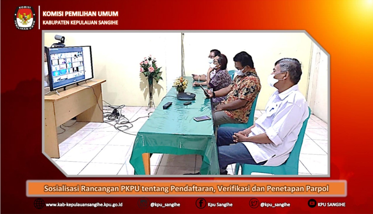 Tahuna, kab-kepulauansangihe.kpu.go.id - Kamis (07/04/2022) KPU Sangihe mengikuti Sosialisasi Rancangan Peraturan Komisi Pemilihan Umum tentang Pendaftaran, Verifikasi dan Penetapan Partai Politik Peserta Pemilu Tahun 2024 yang diselenggarakan oleh Direktorat Jenderal Politik dan Pemerintahan Umum Kementerian Dalam Negeri Republik Indonesia dengan peserta seluruh Penyelenggara dan Stakeholder yang terkait dengan Pelaksanaan Pemilu 2024.