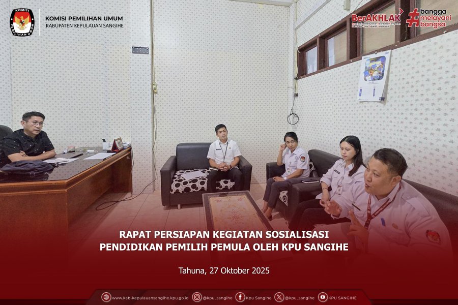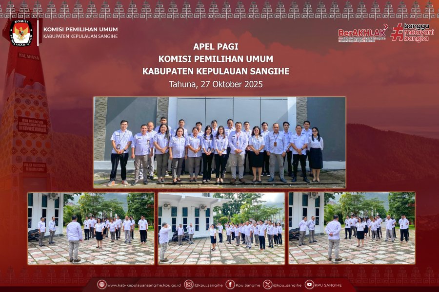 Tahuna, kab-kepulauansangihe.kpu.go.id – Dalam rangka memperingati Hari Sumpah Pemuda yang ke-97 tahun 2025, Komisi Pemilihan Umum (KPU) Kabupaten Kepulauan Sangihe melaksanakan upacara bendera pada hari Selasa, 28 Oktober 2025. Upacara digelar di halaman Kantor KPU Sangihe dan berlangsung dengan penuh khidmat. Kegiatan diikuti oleh seluruh Anggota KPU Sangihe, Plt. Sekretaris, Para Kepala Sub-Bagian, Pejabat Fungsional, serta seluruh Staf Sekretariat KPU Sangihe. Bertindak sebagai Inspektur Upacara adalah Ketua Divisi Partisipasi Masyarakat dan Sumber Daya Manusia, Bapak Dellas T. Marasut. Dalam amanatnya, beliau menyampaikan betapa pentingnya menjaga dan menghidupkan kembali semangat Sumpah Pemuda sebagai wujud komitmen generasi muda untuk menjaga persatuan dan kesatuan bangsa. “Semangat Sumpah Pemuda harus terus kita hidupkan, terutama dalam menjalankan tugas dan tanggung jawab sebagai penyelenggara pemilu. Nilai-nilai persatuan, kerja sama, dan semangat kebangsaan menjadi modal penting dalam mewujudkan pemilu yang berintegritas dan bermartabat,” ujar Bapak Marasut. Selain itu, dalam sambutannya beliau menegaskan bahwa sebagai bagian dari aparatur penyelenggara pemilu di Kabupaten Kepulauan Sangihe, seluruh jajaran KPU memiliki peran strategis dalam memperkuat partisipasi masyarakat dan menjaga marwah demokrasi melalui pelayanan yang profesional dan akuntabel. Upacara peringatan ini menjadi momentum bagi KPU Sangihe untuk meneguhkan kembali semangat kebersamaan, nasionalisme, serta tanggung jawab moral dalam memberikan pelayanan terbaik kepada masyarakat di Kabupaten Kepulauan Sangihe, khususnya dalam rangka penyelenggaraan Pemilu dan Pemilihan.