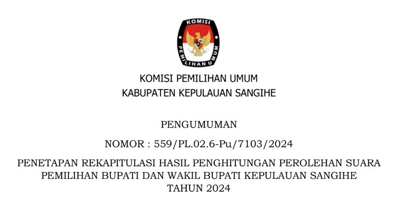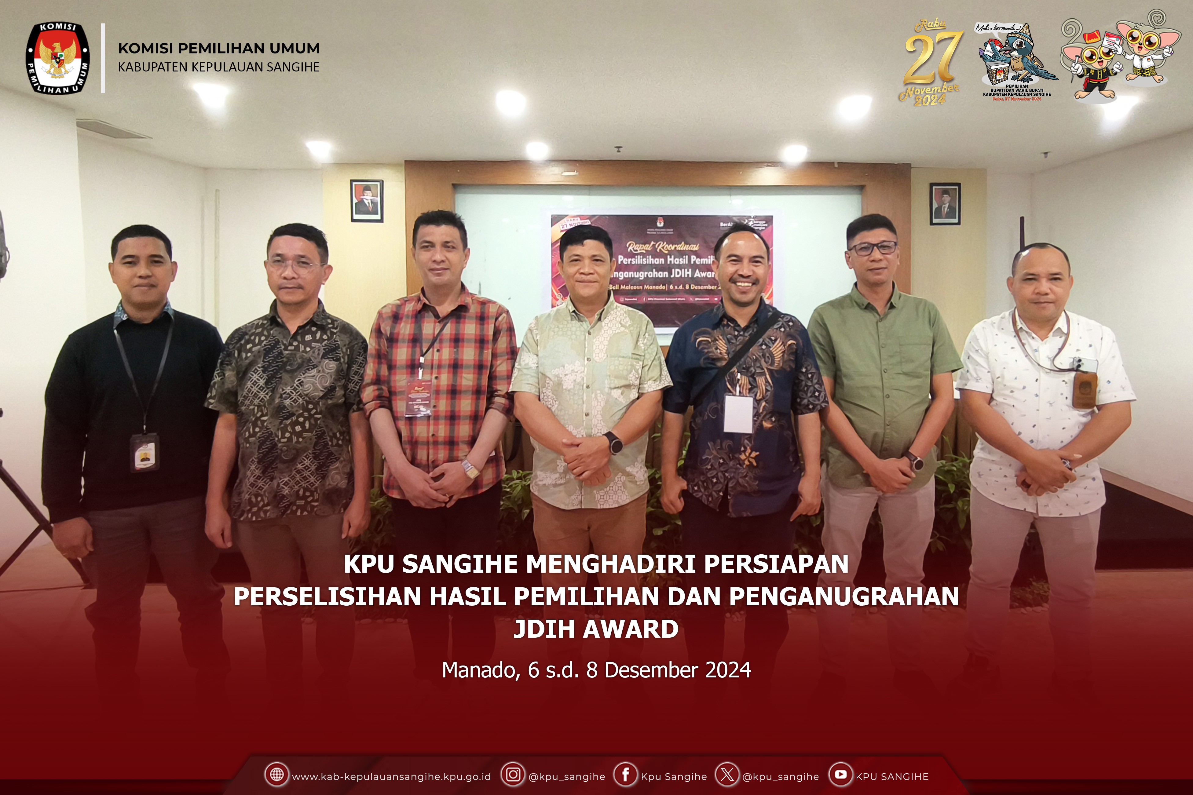 Manado, kab-kepulauansangihe.kpu.go.id - KPU Sangihe menghadiri Rapat Pleno Terbuka Rekapitulasi Hasil Pemilihan Gubernur dan Wakil Gubernur Sulawesi Utara dalam Pemilihan Serentak Tahun 2024. Kamis s.d. Sabtu (5-7/12/2024).