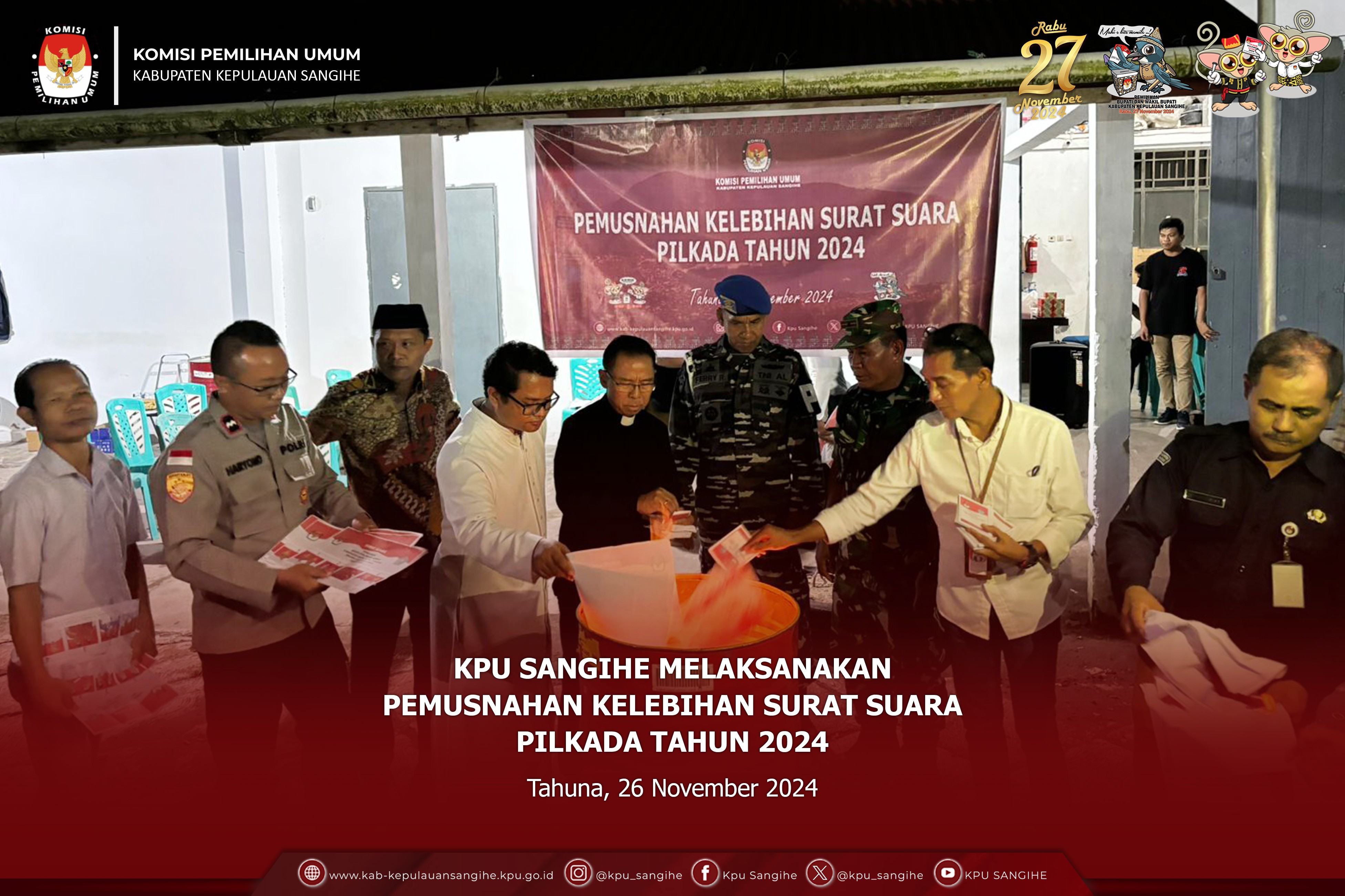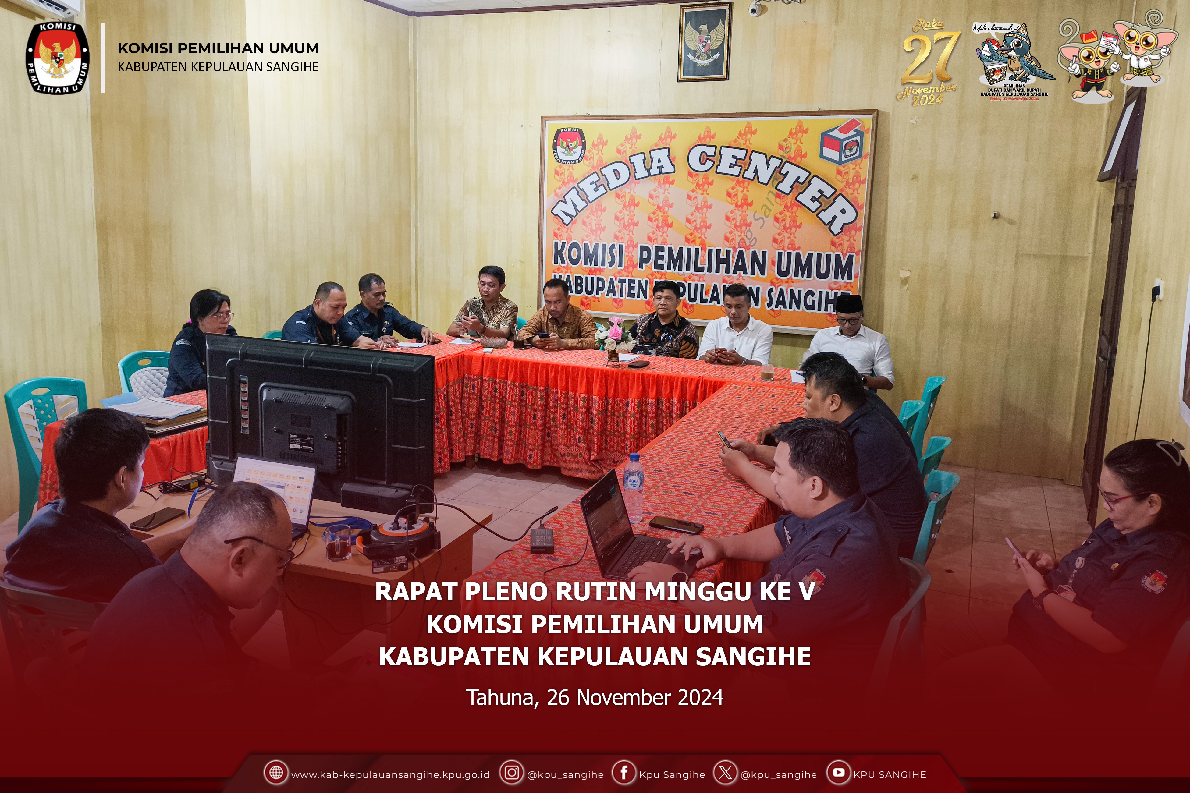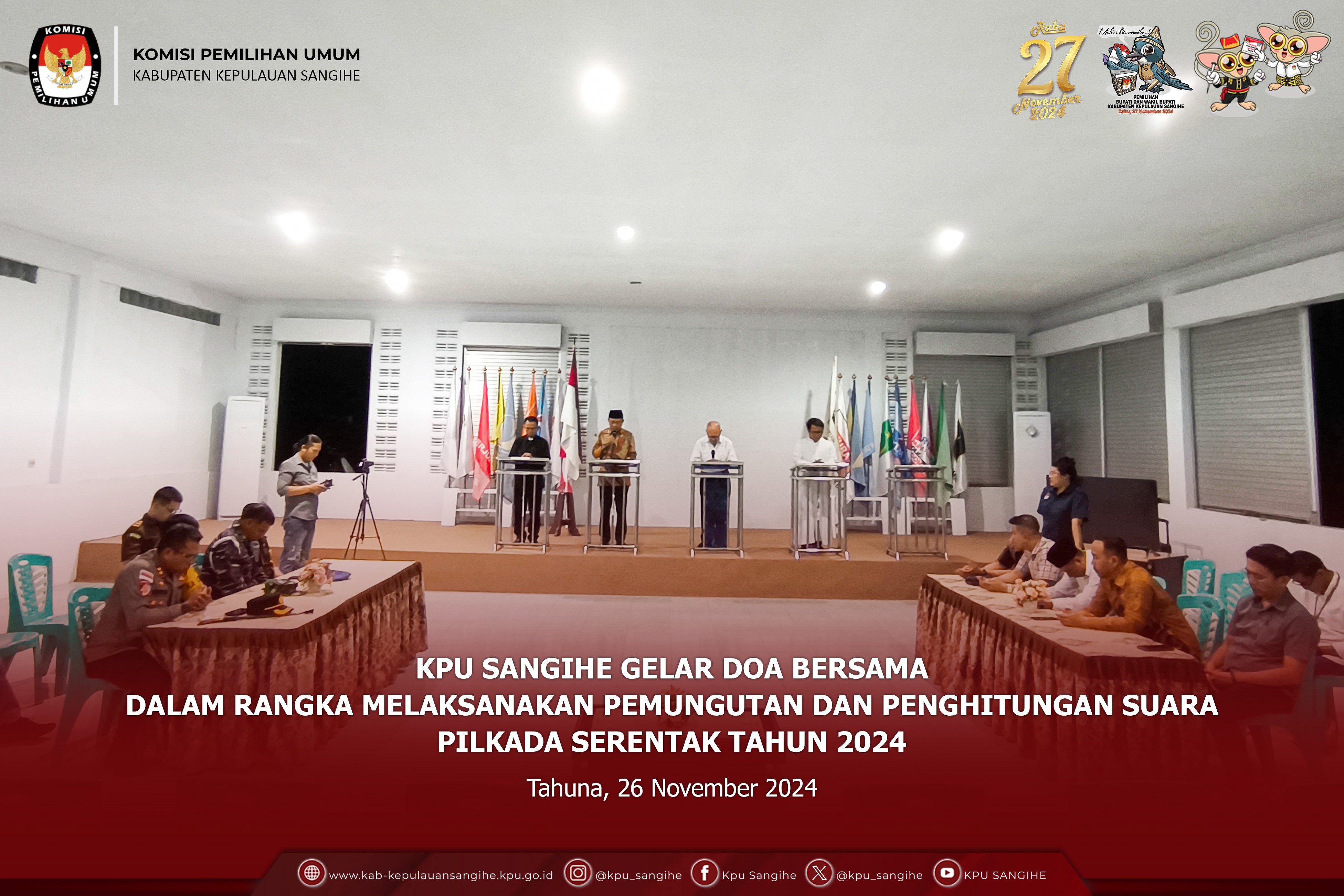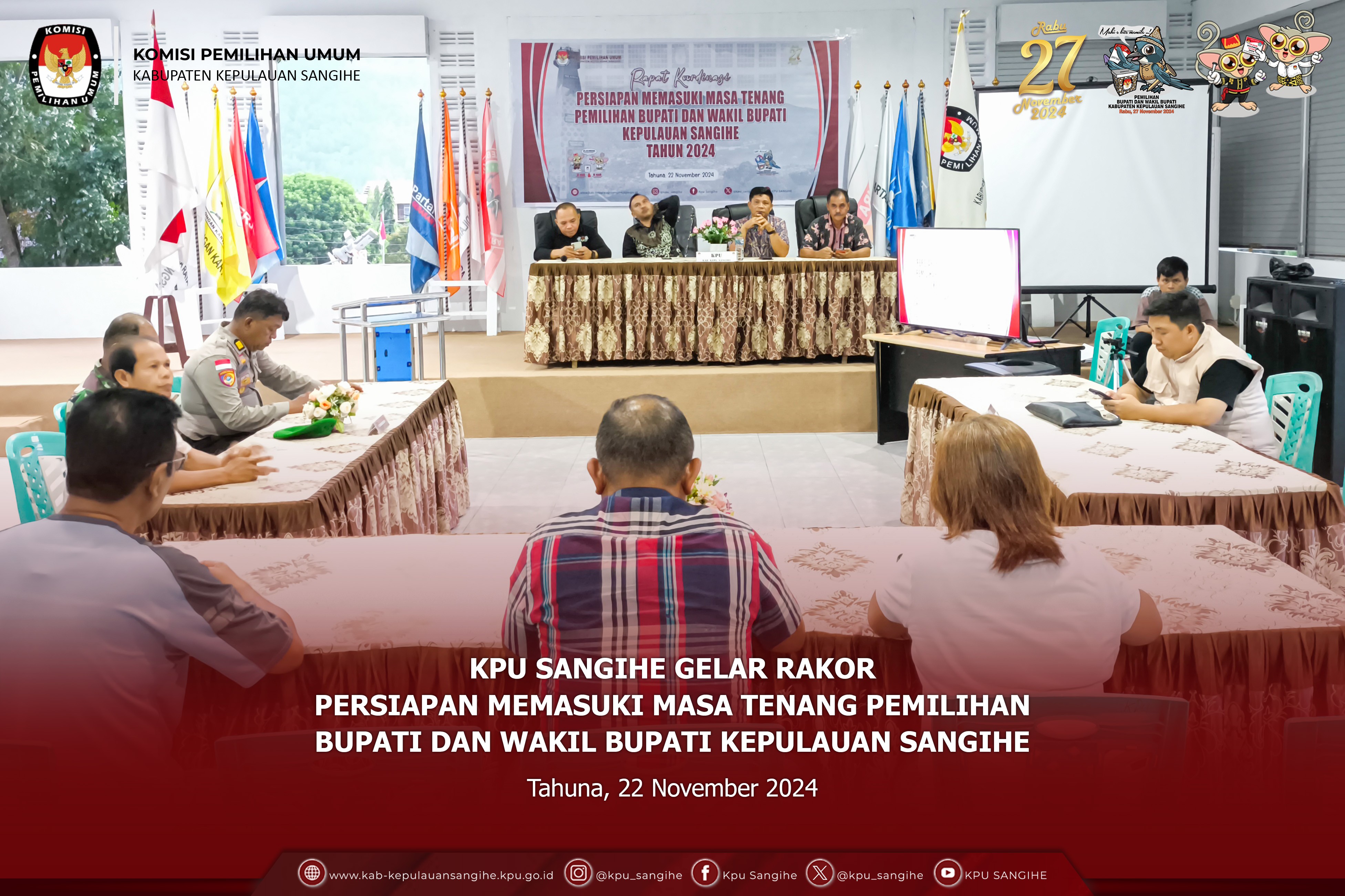 Tahuna, kab-kepulauansangihe,kpu.go.id - Jelang berakhrinya Tahapan Kampanye, KPU Sangihe menggelar Rapat Koordinasi Persiapan memasuki Masa Tenang Pemilihan Bupati dan Wakil Bupati Kepulauan Sangihe Tahun 2024. Jumat (22/11/2024).