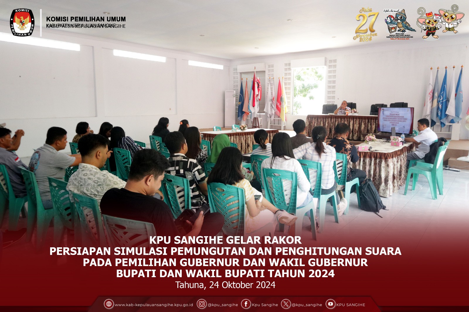 "KPU Sangihe ingin mensukseskan kegiatan Pilkada 2024 yang pemungutan suaranya pada tanggal 27 November 2024 nanti, dengan partipasi pemilih yang tinggi khususnya pemilih pemula, kegiatan KPU goes to school diseluruh Indonesia dapat dilaksaan dengan baik, sosialisasi nobar tepatilah janji boleh di apresiasikan di tanggal 27 November 2024 nanti, sebagai pemilih pemula gunakan hak pilihnya menjadi pemilih yang baik, menjadi pemilih yang cerdas dan berkualitas.