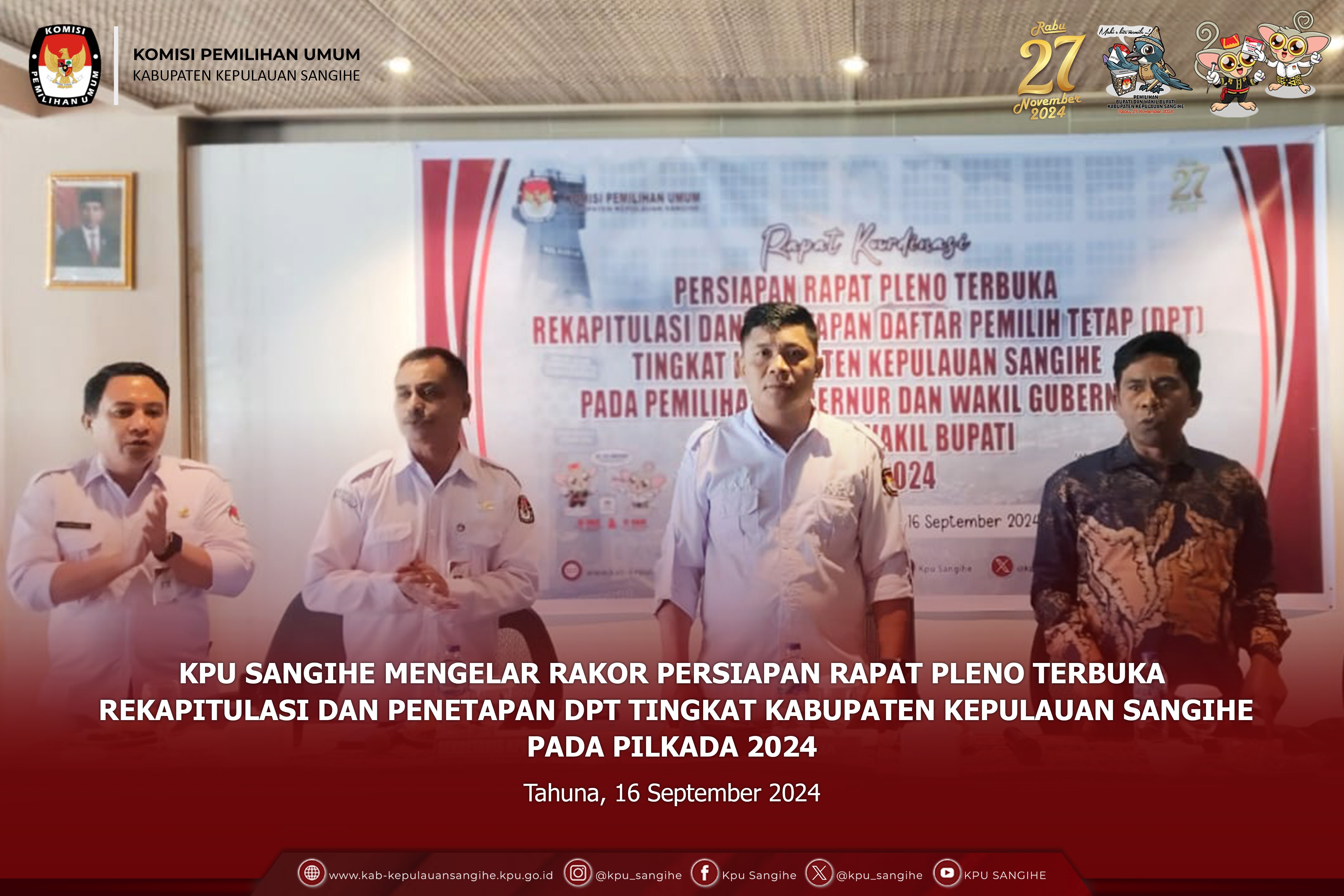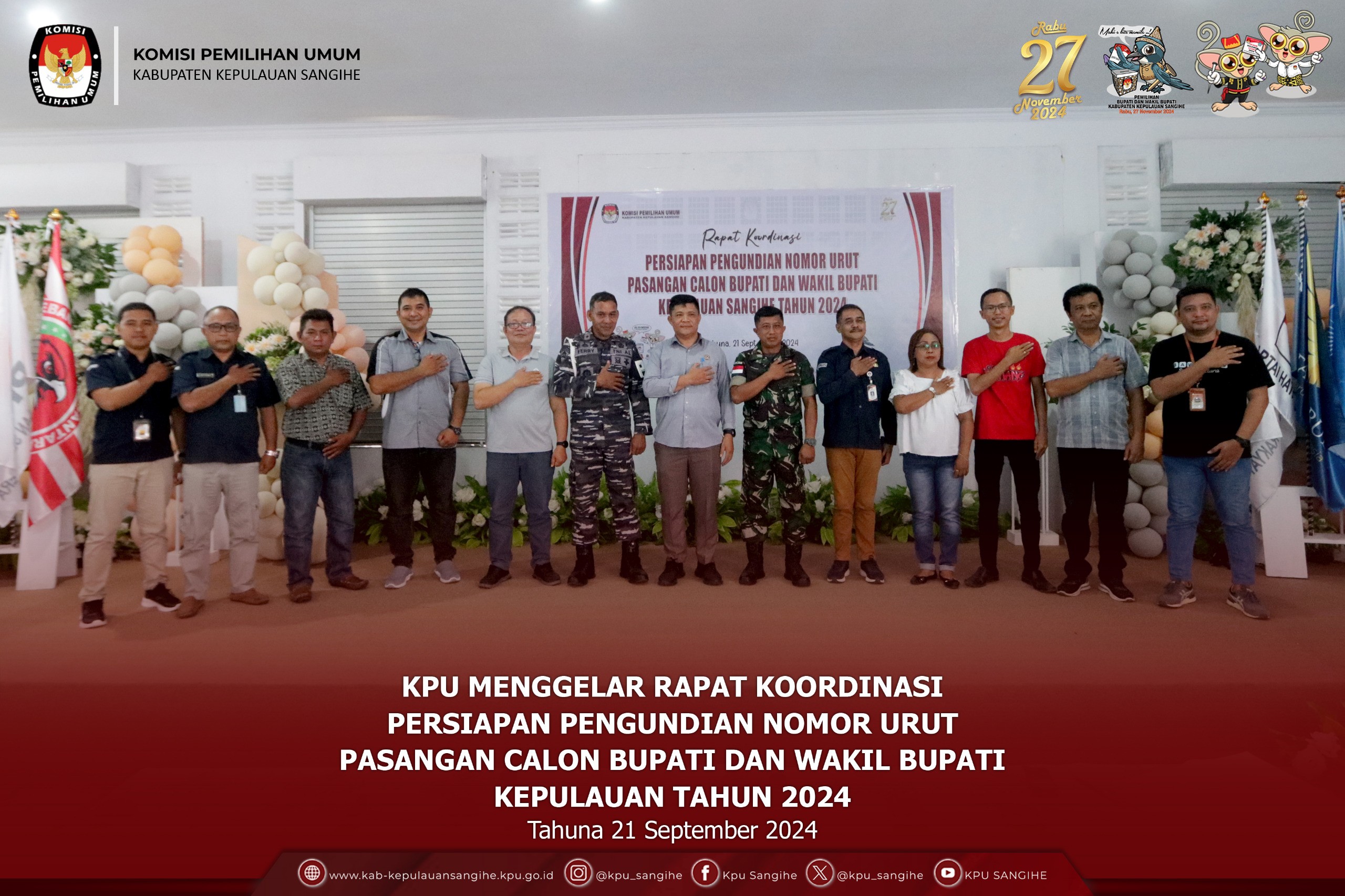 Tahuna, kab-kepulauansangihe.kpu.go.id - Ketua KPU Kabupaten Kepulauan Sangihe Absan R. Tahendung, membuka acara kegiatan Rapat Koordinasi Persiapan Pengundian Nomor Urut Pasangan Calon Bupati dan Wakil Bupati Kabupaten Kepulauan Sangihe yang didampingi oleh Anggota KPU Kabupaten Kepulauan Sangihe Iklam Patonaung, bersama sekretaris KPU Kabupaten Kepulauan Sangihe Alwi Kawoka, di aula Lt. 2 Kantor KPU Kabupaten Kepulauan Sangihe, Sabtu (21/9/2024). Kegiatan rakor dilaksanakan untuk dapat menjelaskan standar mekanisme pengundian nomor urut pasangam calon (paslon) agar dapat pasangan calon mengetahui alur jalannya acara pengundian nomor urut nanti, dan kegiatan pengundian nomor urut calon. Kegiatan ini juga di hadiri oleh Lo pasangan calon, Bawaslu, Dinas Perhubungan, Pangkalan TNI Angkatan Laut (Lanal) Tahuna dan Komandan Kodim 1301 Sangihe. Dalam penjelasan Absan, kegiatan ini tidak jauh berbeda dengan penetapan calon, pelaksanaan pengundian nomor urut nanti KPU melaksanakan di gedung KPU Kabupaten Kepulauan Sangihe sendiri, dan KPU menggunakan 2 (dua) area, atas (ring 1) dan bawah (ring 2), dan dalam pelaksanaan pengundian nanti paslon ditempatkan di area ring 1 dengan tim pendukung sebanyak 15 (lima belas) orang dan area ring 2 adalah tim pendukung paslon sebanyak 35 (tiga puluh lima) orang, dan keseluruhan sebanyak 50 (lima puluh) orang termasuk paslon dan akan diberikan id card acara, peserta dibatasi memasuki area gedung KPU dan hanya yang mempunyai id card acara yang dapat memasuki dan mengikuti kegiatan acara nanti, tegas Absan. Didalam teknis pelaksanaan nanti akan ada tata tertib yang akan dibacakan oleh salah satu anggota KPU dan setelahnya akan masuk acara pada pengambilan no antrian oleh calon wakil bupati, dan secara bergantian sesuai dengan kedatangan di registrasi, dan selanjutnya mengambil dengan nomor undian nomor urut, dan pengambilannya bupati dan wakil bupati membuka nomor undian secara bersamaan, dan nomor urut itu akan di catat dan di bacakan sesuai dengan nomor urut yang diperoleh bupati dan wakil bupati dan akan diproses Surat Keputusan (SK) dan dibuat berita acara (ba) setelah itu akan dibacakan terkait penetapan nomor urut bupati dan wakil bupati, dan masing masing calon akan diberikan kesempatan sambutan secara bergantian. Setelah tahapan pengundian nomor urut KPU selanjutnya melaksanakan acara deklarasi kampanye damai. "Jadi setelah kegiatan pengundian nomor urut paslon bupati dan wakil bupati KPU akan akan melaksanakan kegiatan deklarasi kampanye damai", tambah Absan. Kegiatan sosialisasi rakor ini juga di hadiri Kasubag Hukum dan SDM (Merry Malendes), dan staf jajaran KPU Kabupaten Sangihe.