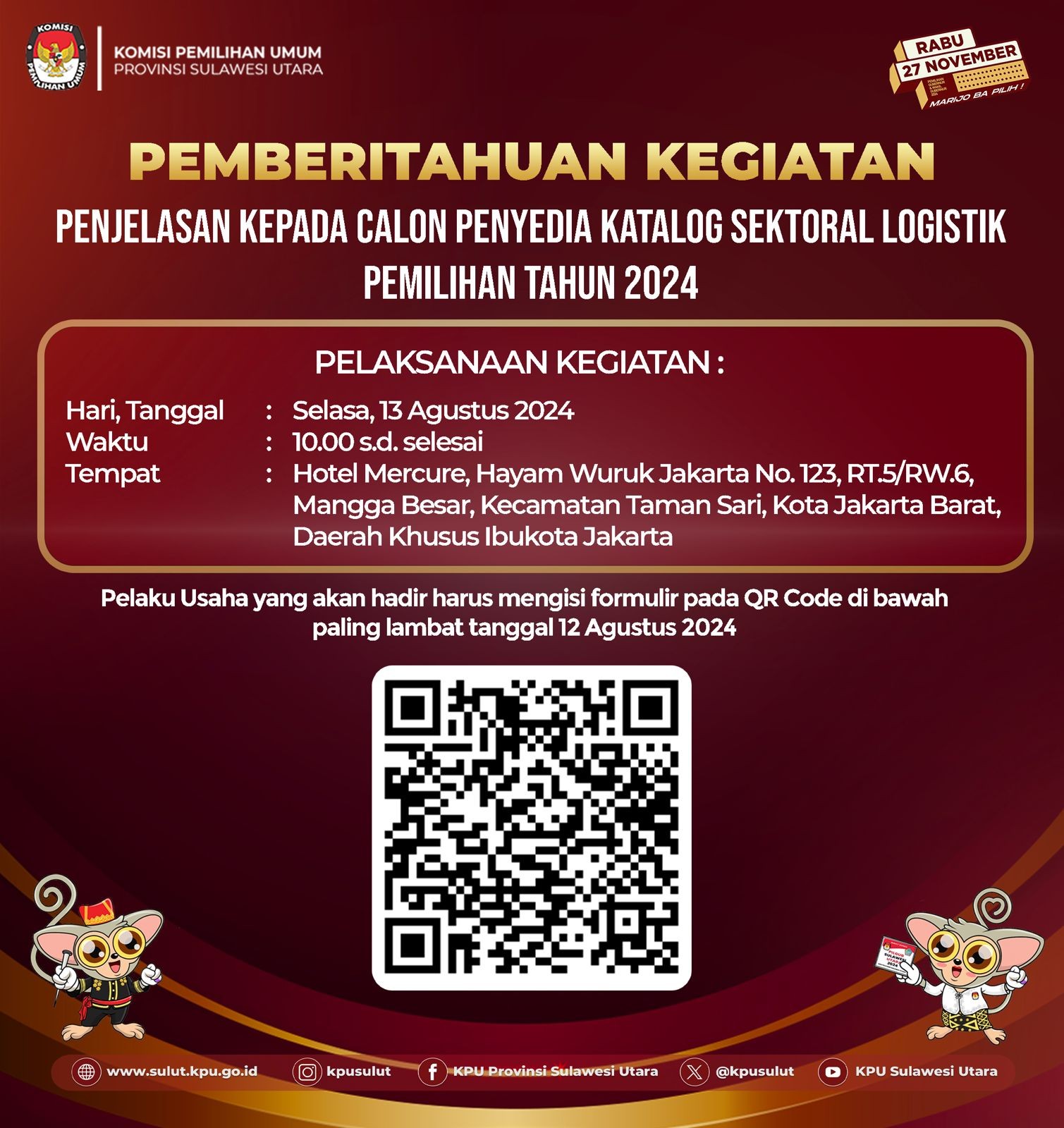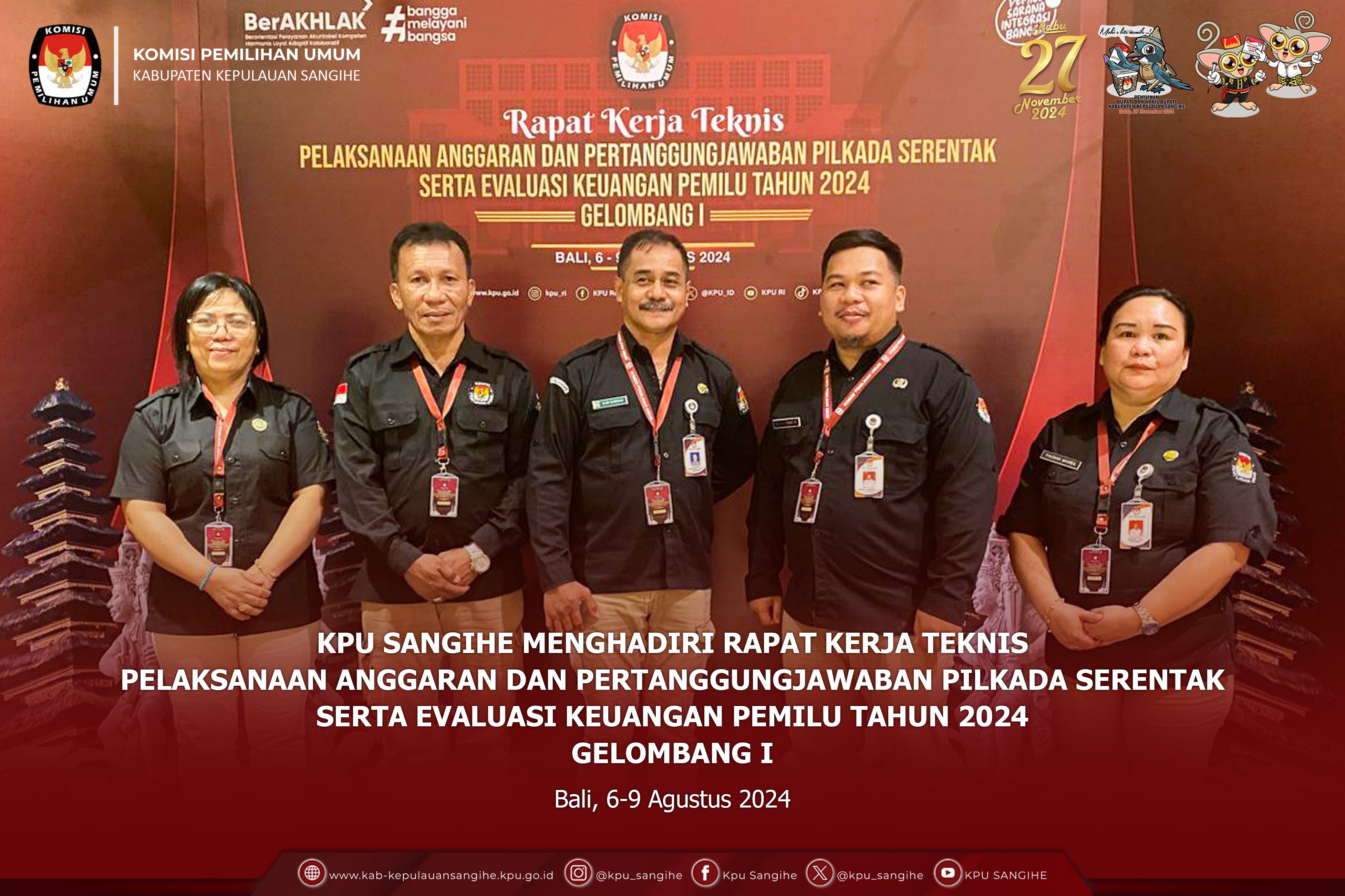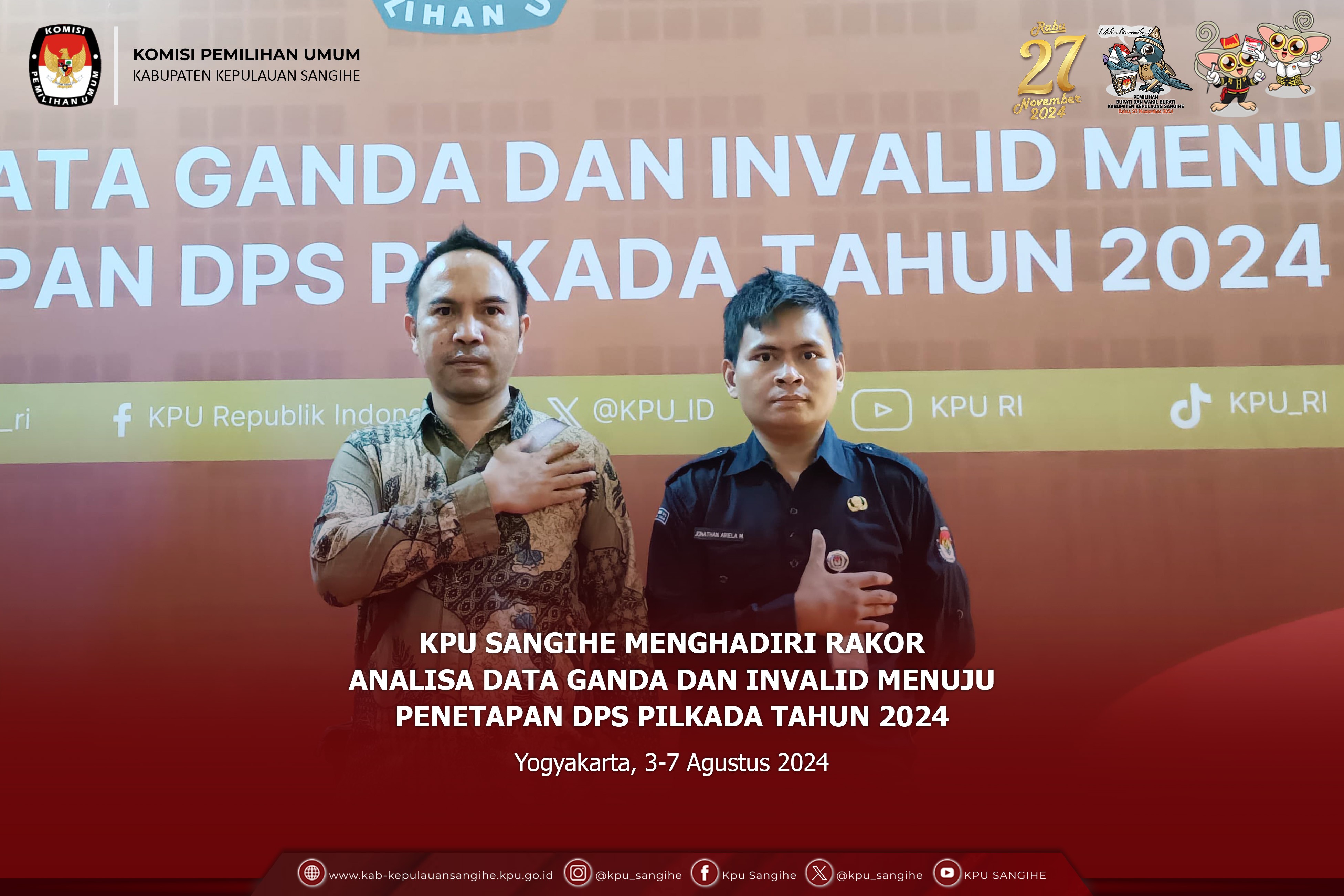Tahuna, kab-kepulauansangihe.kpu.go.id - KPU Sangihe menggelar Rapat Pleno Terbuka Rekapitulasi dan Penetapan Daftar Pemilih Sementara (DPS) pada Pemilihan Gubernur dan Wakil Gubernur, Bupati dan Wakil Bupati Tahun 2024. Sabtu s.d. Minggu (10-11/8/2024). Bertempat di Tahuna Beach Hotel & Resort, KPU Sangihe menggelar Rapat Pleno Terbuka Rekapitulasi dan Penetapan Daftar Pemilih Sementara (DPS) pada Pemilihan Gubernur dan Wakil Gubernur, Bupati dan Wakil Bupati Tahun 2024 mulai Tanggal 10-11 Agustus 2024. Adapun uraian sebagai berikut : Pada hari Minggu tanggal Sebelas bulan Agustus tahun Dua Ribu Dua Puluh Empat bertempat di Tahuna, KPU Kabupaten Kepulauan Sangihe telah melaksanakan Rapat Pleno Terbuka Rekapitulasi Daftar Pemilih Sementara (DPS) Tingkat Kabupaten Kepulalauan Sangihe untuk Pemilihan Gubernur dan Wakil Gubernur dan Pemilihan Bupati dan Wakil Bupati Tahun 2024. Dalam Rapat tersebut, KPU Kabupaten Kepulauan Sangihe menetapkan Rekapitulasi Daftar Pemilih Sementara (DPS) Tingkat Kabupaten Kepulauan Sangihe dengan rincian sebagai berikut: 1. Rekapitulasi Daftar Pemilih Sementara JUMLAH KECAMATAN : 15 JUMLAH DESA/KELURAHAN : 167 JUMLAH TPS : 306 JUMLAH PEMILIH LAKI-LAKI : 53625 JUMLAH PEMILIH PEREMPUAN : 52815 JUMLAH PEMILIH L+P : 106440 2. Menerima Masukan dari Bawaslu Kabupaten Kepulauan Sangihe. Turut Hadir dalam Rapat Pleno : 1. Pj. Bupati Kabupaten Kepulauan Sangihe 2. Ketua dan Anggota KPU Sangihe 3. Bawaslu Kabupaten Kepulauan Sangihe 4. Kejaksaan Negeri Kabupaten Kepulauan Sangihe 5. Pengadilan Negeri Tahuna 6. Kapolres Kepulauan Sangihe 7. Danlanal Tahuna 8. Dandim 1301 Sangihe (diwakili) 9. Plt Kadis Dukcapil Kabupaten Kepulauan Sangihe 10. Kaban Kesbangpol Kabupaten Kepulauan Sangihe 11. Kalapas Kelas IIB Tahuna 12. Pejabat Fungsional KPU Sangihe (Plh. Sekretaris) 13. Para Kasubag KPU Sangihe 14. Staf Sekretariat KPU Sangihe 15. Ketua dan Anggota se- Kabupaten Kepulauan Sangihe