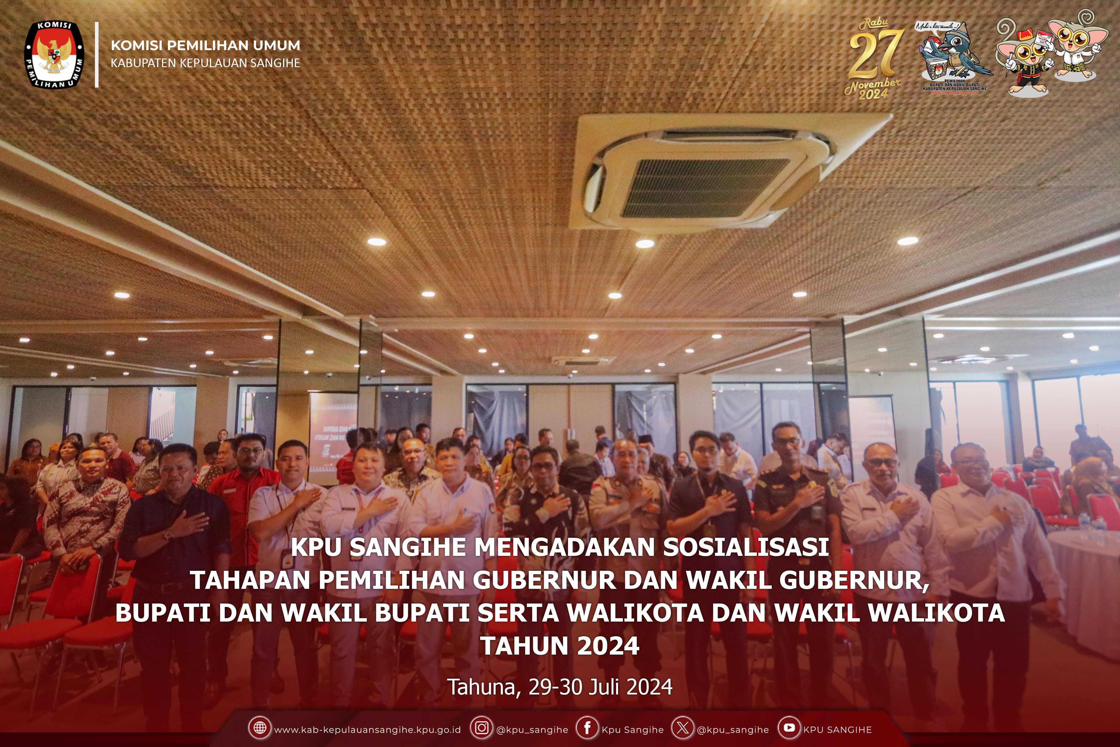 Tahuna, kab-kepulauansangihe.kpu.go.id - KPU Sangihe mengadakan Sosialisasi Tahapan Pemilihan Gubernur dan Wakil Gubernur, BUpati dan Wakil Bupati serta Walikota dan Wakil Walikota Tahun 2024. Senin s.d. Selasa (29-30/7/2024).