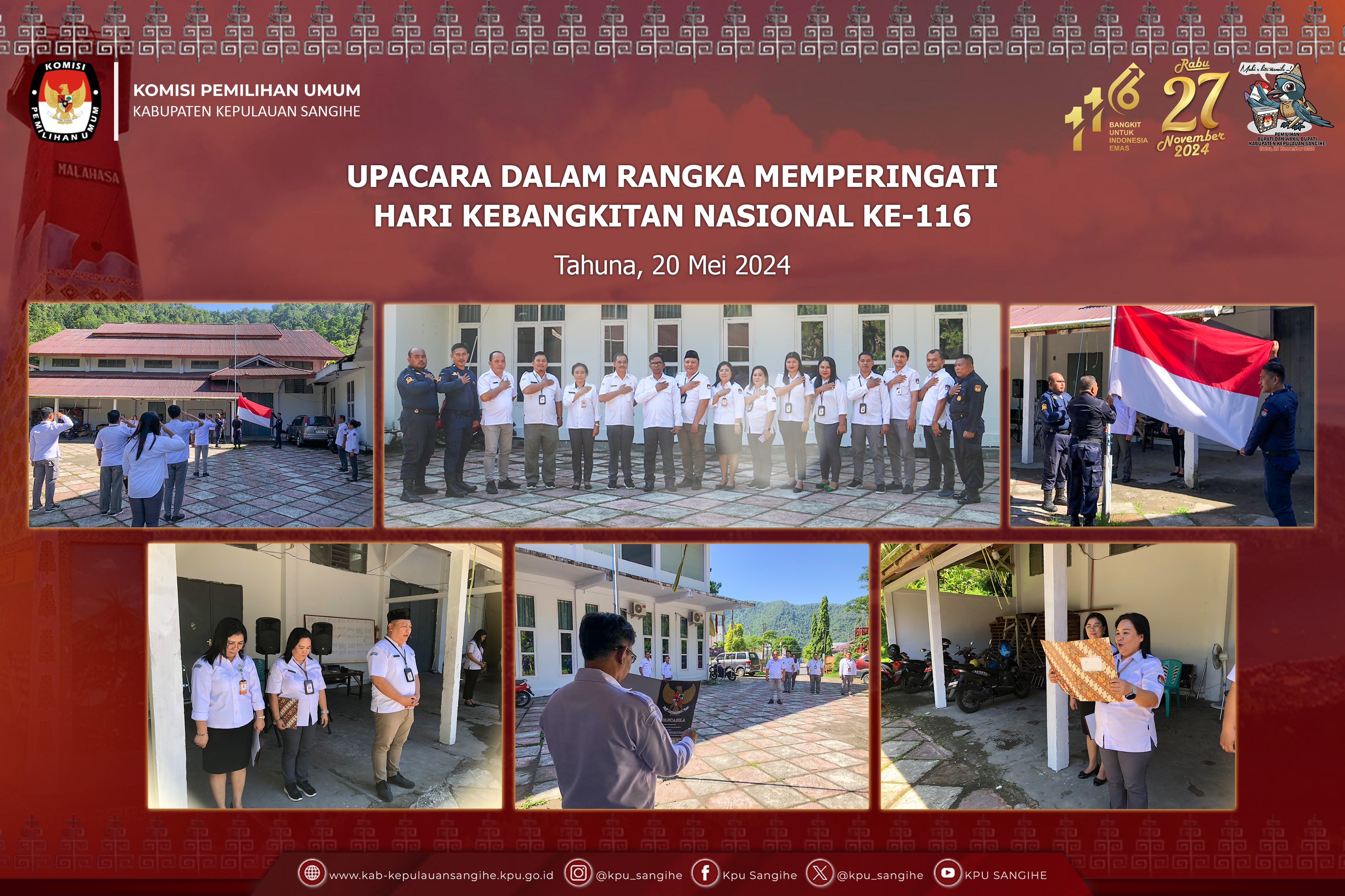 Tahuna, kab-kepulauansangihe.kpu.go.id - KPU Sangihe melaksanakan Upacara Bendera dalam rangka Memperingati Hari Kebangkitan Nasional ke-116. Senin (20/5/2024).