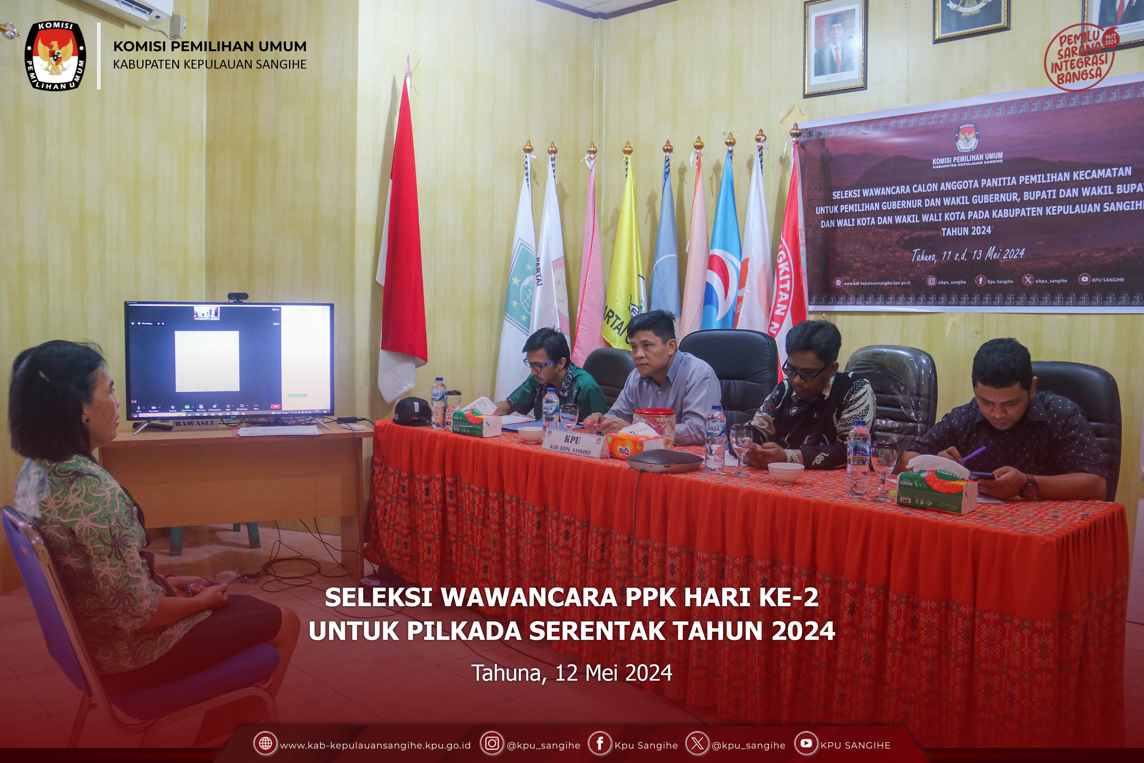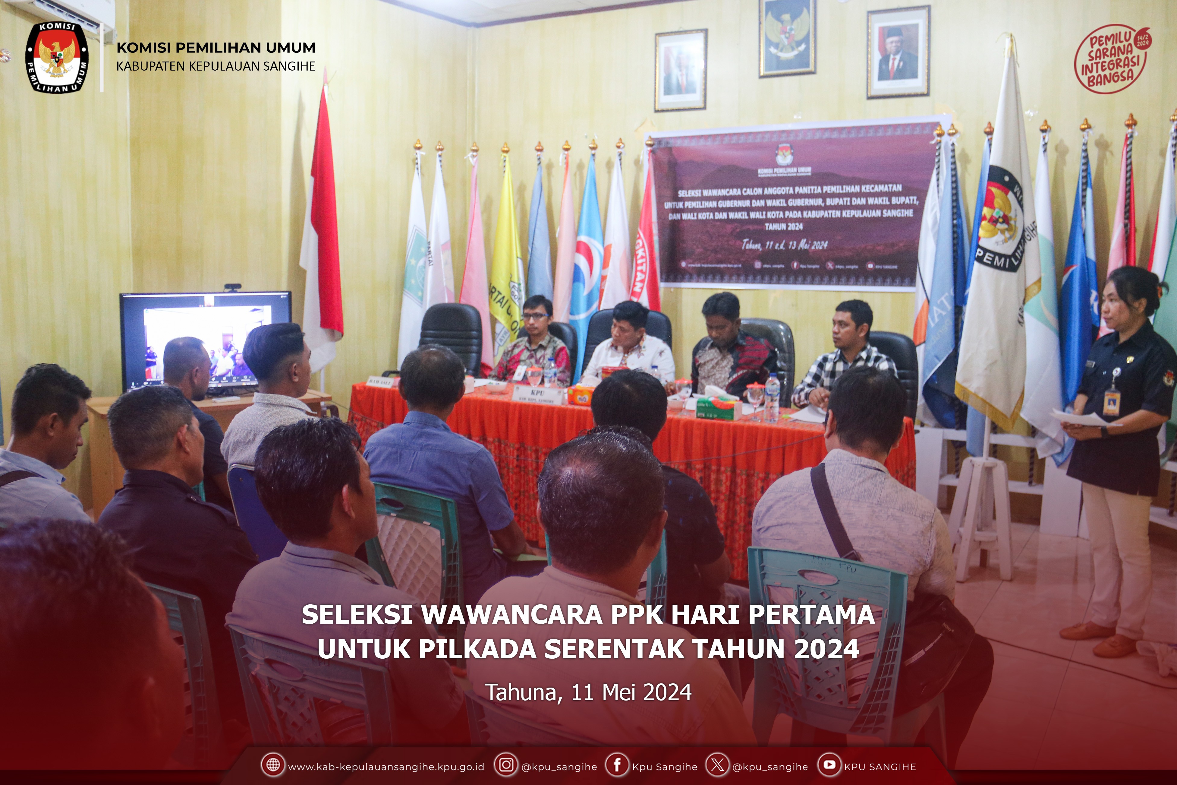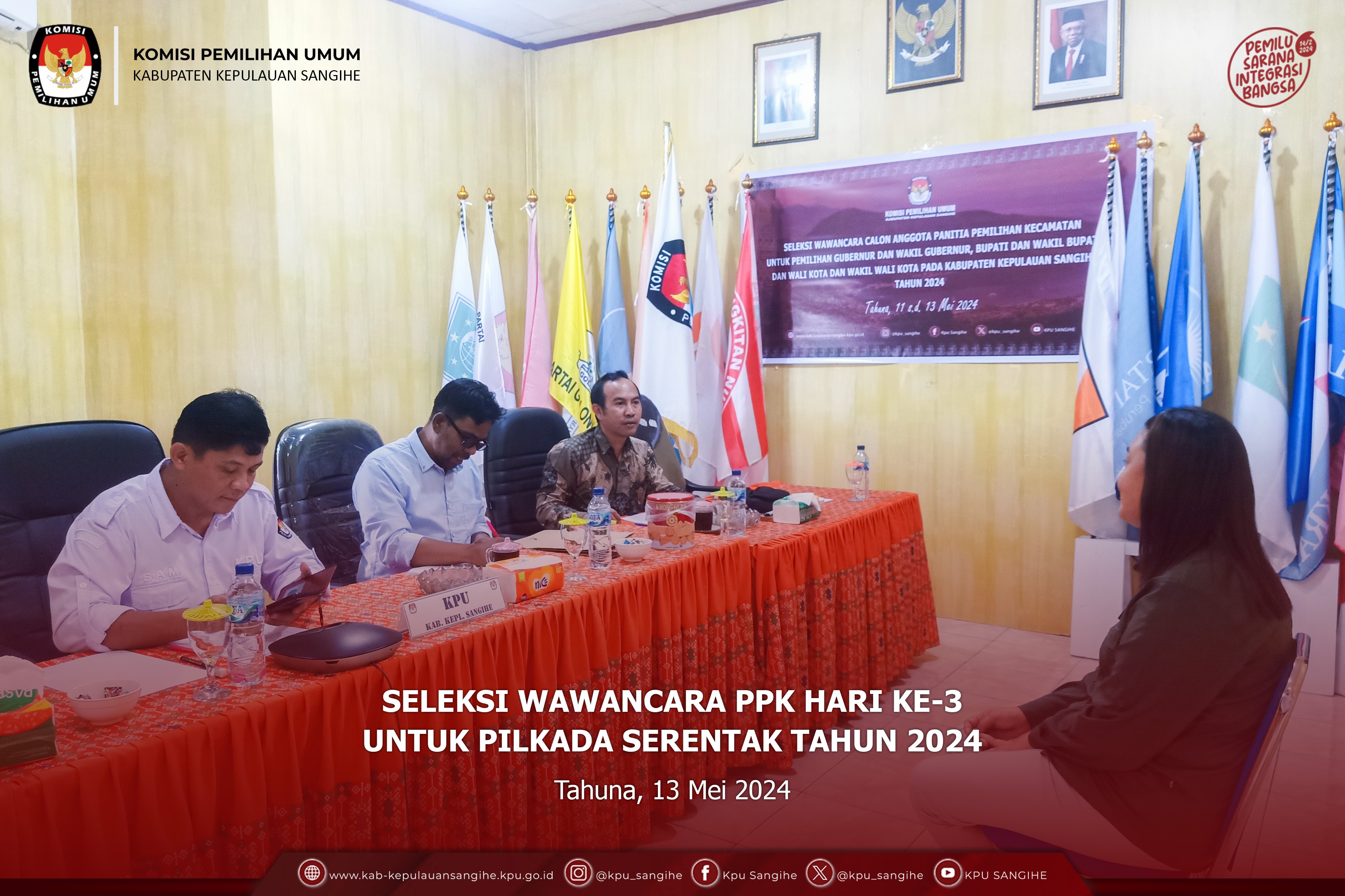 Tahuna, kab-kepulauansangihe.kpu.go.id - KPU Sangihe melaksanakan Seleksi Wawancara Panitia Pemilihan Kecamatan Hari ke-3 untuk Pemilihan Gubernur dan Wakil Gubernur, Bupati dan Wakil Bupati, Wali Kota dan Wakil Wali Kota pada Kabupaten Kepulauan Sangihe Tahun 2024. Senin (13/5/2024).