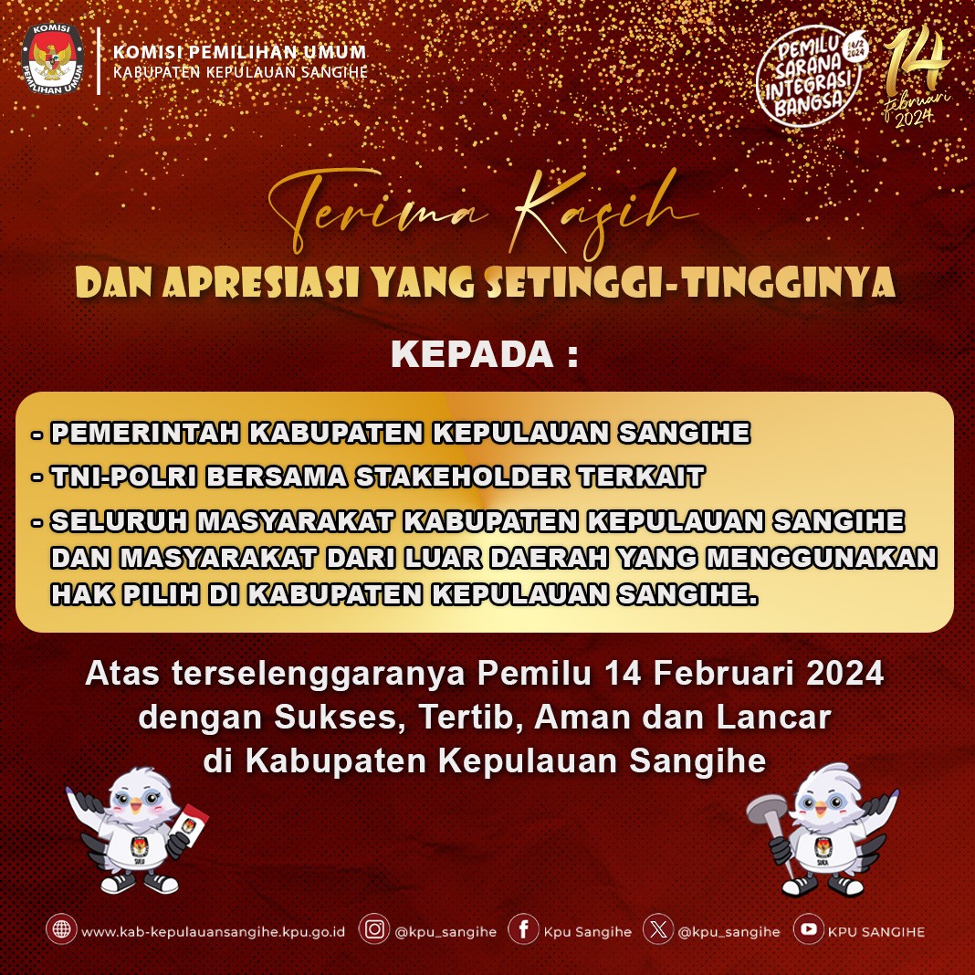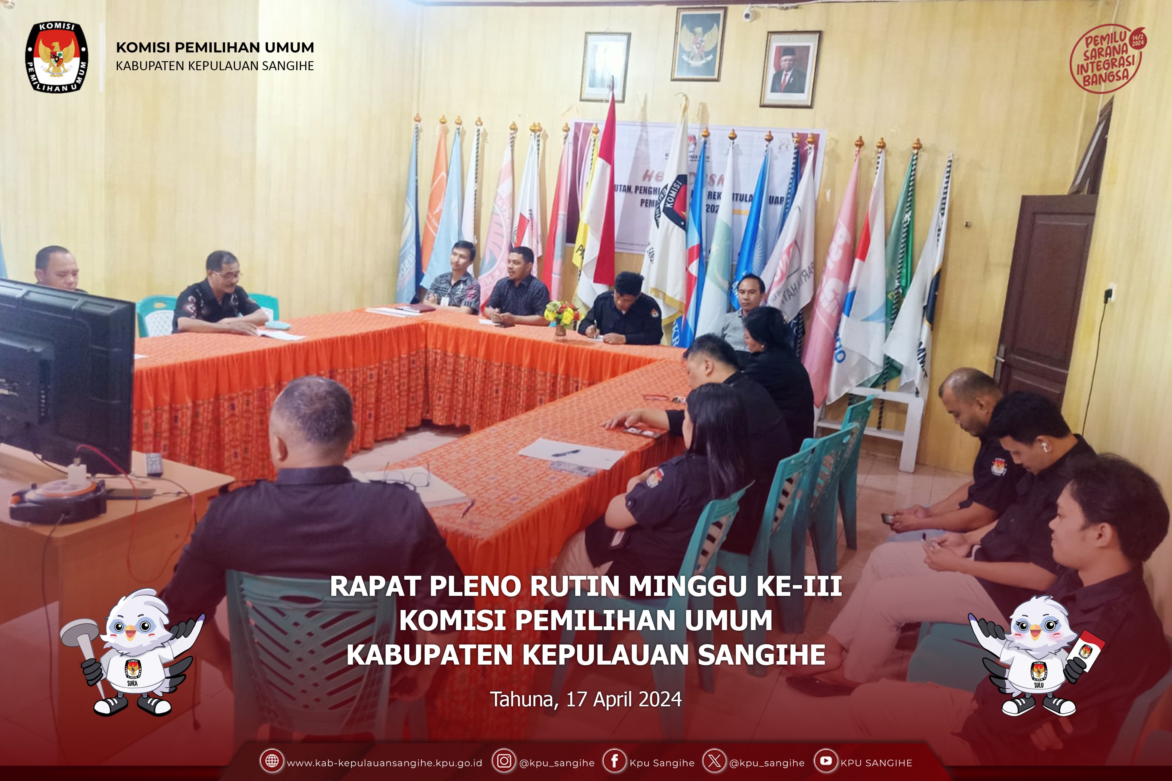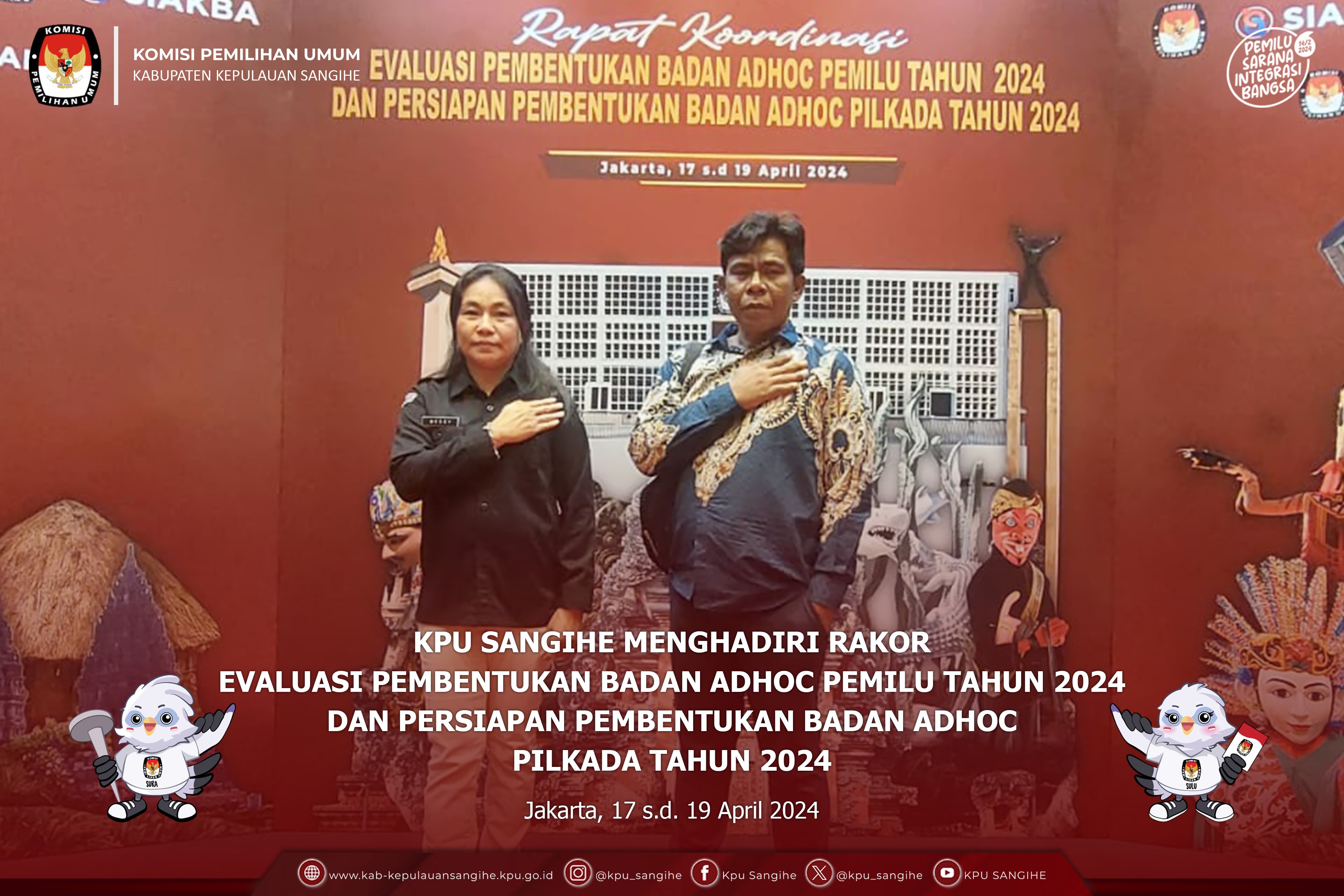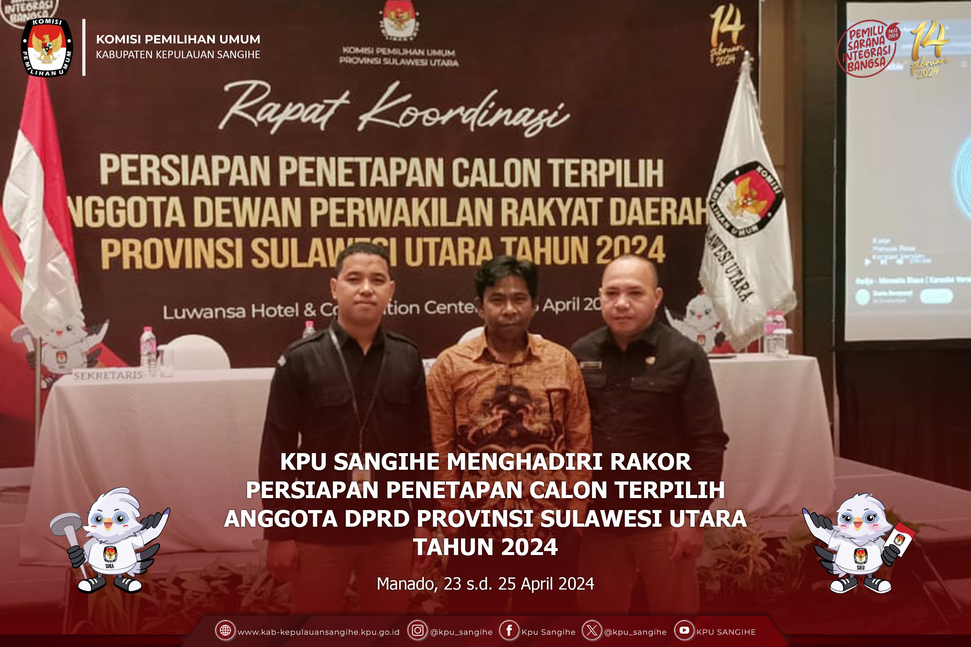 Manado, kab-kepulauansangihe.kpu.go.id - Dalam rangka persiapan Penetapan Calon Terpilih Anggota Dewan Perwakilan Rakyat Daerah, KPU Sangihe menghadiri Rapat Koordinasi Persiapan Penetapan Calon Terpilih Anggota Dewan Perwakilan Rakyat Daerah Provinsi Sulawesi Utara Tahun 2024 yang digelar KPU Provinsi Sulawesi Utara di Luwansa Hotel & Convention Center, Manado. Selasa s.d. Kamis (23-25/4/2024).