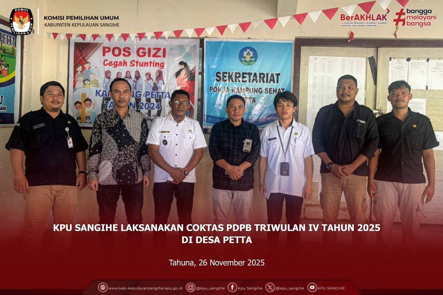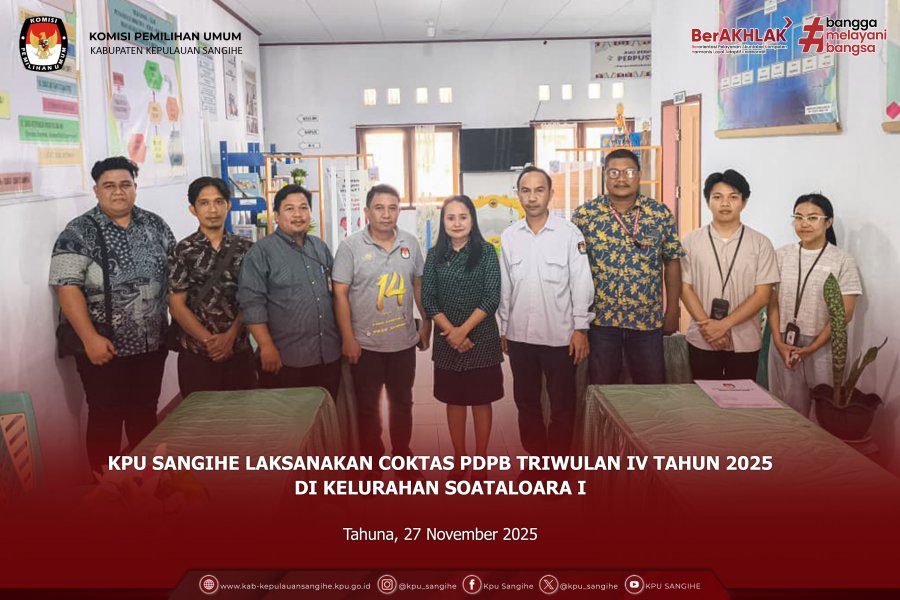 Tahuna, kab-kepulauansangihe.kpu.go.id – Komisi Pemilihan Umum (KPU) Kabupaten Kepulauan Sangihe melaksanakan koordinasi dengan SMA Negeri 3 Tahuna Barat dalam rangka persiapan pelaksanaan kegiatan Sosialisasi Pendidikan Pemilih Pemula. Kegiatan koordinasi ini berlangsung pada Jumat, 28 November 2025. Tim KPU Sangihe dipimpin oleh Kepala Sub Bagian Partisipasi Masyarakat, Hubungan Masyarakat, dan SDM, Ibu Merry Malendes, yang turut didampingi oleh dua orang staf Sub Bagian. Kehadiran jajaran KPU Sangihe disambut dengan baik oleh pihak sekolah dan langsung diarahkan untuk melakukan diskusi bersama. Pertemuan berlangsung dalam suasana hangat dan komunikatif. Pembahasan utama mencakup kesiapan sekolah sebagai lokasi kegiatan, termasuk kebutuhan teknis serta penentuan waktu pelaksanaan. Pada kesempatan tersebut, pihak sekolah sudah memberikan informasi mengenai jadwal kegiatan sosialisasi yaitu pada 2 Desember 2025 nanti. Pihak Sekolah menyampaikan apresiasi atas kunjungan dan inisiatif KPU Sangihe dalam memberikan pendidikan kepemiluan kepada para siswa. Mereka berharap kegiatan ini dapat menjadi sarana penting bagi peserta didik untuk meningkatkan pengetahuan terkait kepemiluan serta membentuk karakter sebagai generasi muda yang siap berperan dalam demokrasi. Sebagai penutup kegiatan, dilaksanakan sesi foto bersama sebagai simbol kebersamaan dan dukungan terhadap suksesnya pelaksanaan kegiatan sosialisasi bagi pemilih pemula.