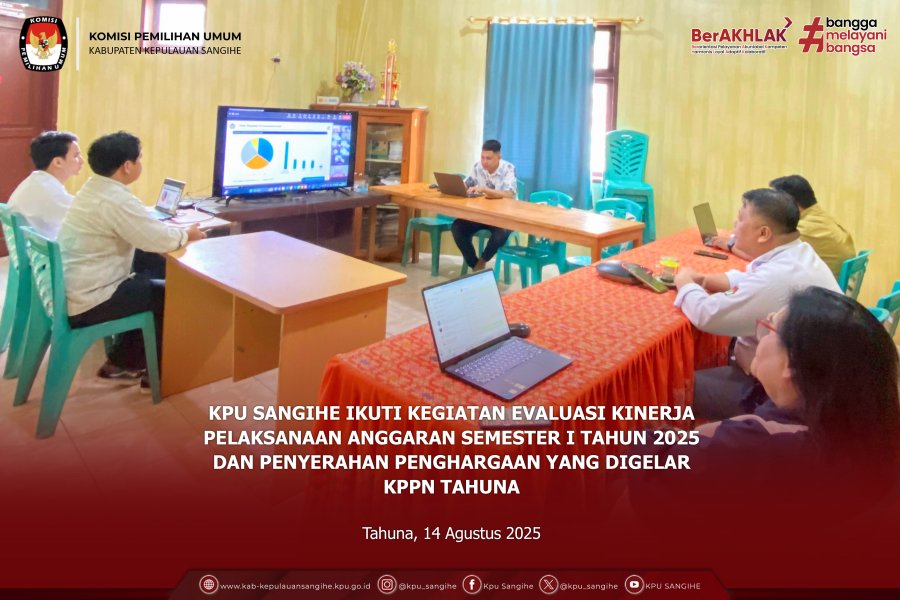 Tahuna, kab-kepulauansangihe.kpu.go.id – Komisi Pemilihan Umum (KPU) Kabupaten Kepulauan Sangihe mengikuti Rapat Koordinasi Evaluasi Pelaksanaan Lelang Eks Logistik dan Pengelolaan Arsip yang diselenggarakan oleh KPU Provinsi Sulawesi Utara pada Jumat, 22 Agustus 2025. Kegiatan ini dilaksanakan secara daring dan diikuti oleh 15 KPU Kabupaten/Kota se-Sulawesi Utara. Peserta kegiatan terdiri dari Sekretaris KPU, Kepala Subbagian (Kasubag) Keuangan, Umum dan Logistik, Staf Pengelola Barang Milik Negara (BMN), serta Operator Srikandi dari masing-masing satuan kerja. KPU Sangihe sendiri mengikuti rapat ini dari Ruang Rapat KPU Sangihe, dengan dihadiri oleh Plt. Sekretaris KPU Sangihe, Bapak Jelly Kantu, Kasubag Keuangan, Umum, dan Logistik, Ibu Nelda Kalangit, Pejabat Fungsional, Bapak Adolf Katiandagho, serta Staf Pengelola BMN dan Operator Srikandi. Rapat koordinasi ini bertujuan untuk mengevaluasi pelaksanaan lelang eks logistik pasca-Pemilihan, sekaligus memberikan arahan terkait pengelolaan arsip dan penataan dokumen berbasis aplikasi Srikandi. Melalui kegiatan ini, diharapkan setiap KPU Kabupaten/Kota dapat meningkatkan tata kelola logistik dan arsip agar lebih efektif, transparan, dan akuntabel. KPU Sangihe berkomitmen untuk terus meningkatkan kualitas pengelolaan eks logistik dan arsip, serta memastikan pemanfaatan sistem informasi berjalan optimal sesuai dengan ketentuan yang berlaku.