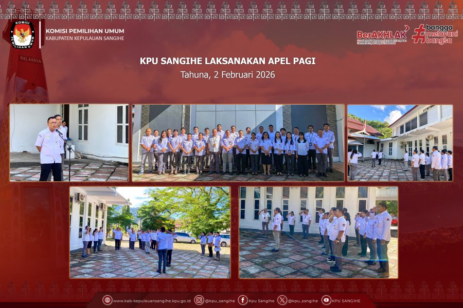 Tahuna, kab-kepulauansangihe.kpu.go.id - Komisi Pemilihan Umum (KPU) Kabupaten Kepulauan Sangihe melaksanakan apel pagi rutin yang bertempat di halaman Kantor KPU Sangihe pada Senin, 2 Februari 2026. Apel pagi yang dilaksanakan setiap hari Senin ini merupakan bagian dari upaya pembinaan kedisiplinan, tanggung jawab, serta peningkatan semangat kerja jajaran sekretariat. Apel pagi dipimpin oleh Kepala Sub Bagian Keuangan, Umum dan Logistik, Bapak Aden Ladi, dengan pembina apel Sekretaris KPU Kabupaten Kepulauan Sangihe, Bapak Fikri Tjikoa. Kegiatan ini diikuti oleh para Kepala Sub Bagian, Pejabat Fungsional, serta seluruh staf sekretariat KPU Sangihe. Dalam arahannya, Bapak Fikri menyampaikan apresiasi dan terima kasih kepada seluruh jajaran sekretariat yang tetap konsisten dan setia mengikuti apel pagi rutin setiap hari Senin. Ia menegaskan bahwa apel pagi merupakan sarana penting untuk menumbuhkan disiplin kerja, memperkuat semangat kebersamaan, serta menjaga soliditas dalam pelaksanaan tugas dan fungsi kelembagaan. Lebih lanjut, Bapak Fikri Tjikoa juga menyampaikan beberapa arahan strategis guna mendukung pelaksanaan program kerja pimpinan, serta mengajak seluruh jajaran untuk terus menjaga komitmen, profesionalisme, dan integritas dalam setiap pelaksanaan tugas, demi mewujudkan tata kelola organisasi yang efektif dan akuntabel. Melalui pelaksanaan apel pagi rutin ini, diharapkan seluruh jajaran sekretariat KPU Kabupaten Kepulauan Sangihe dapat semakin meningkatkan kinerja, koordinasi, dan sinergi dalam mendukung seluruh tahapan dan program kerja KPU ke depan.