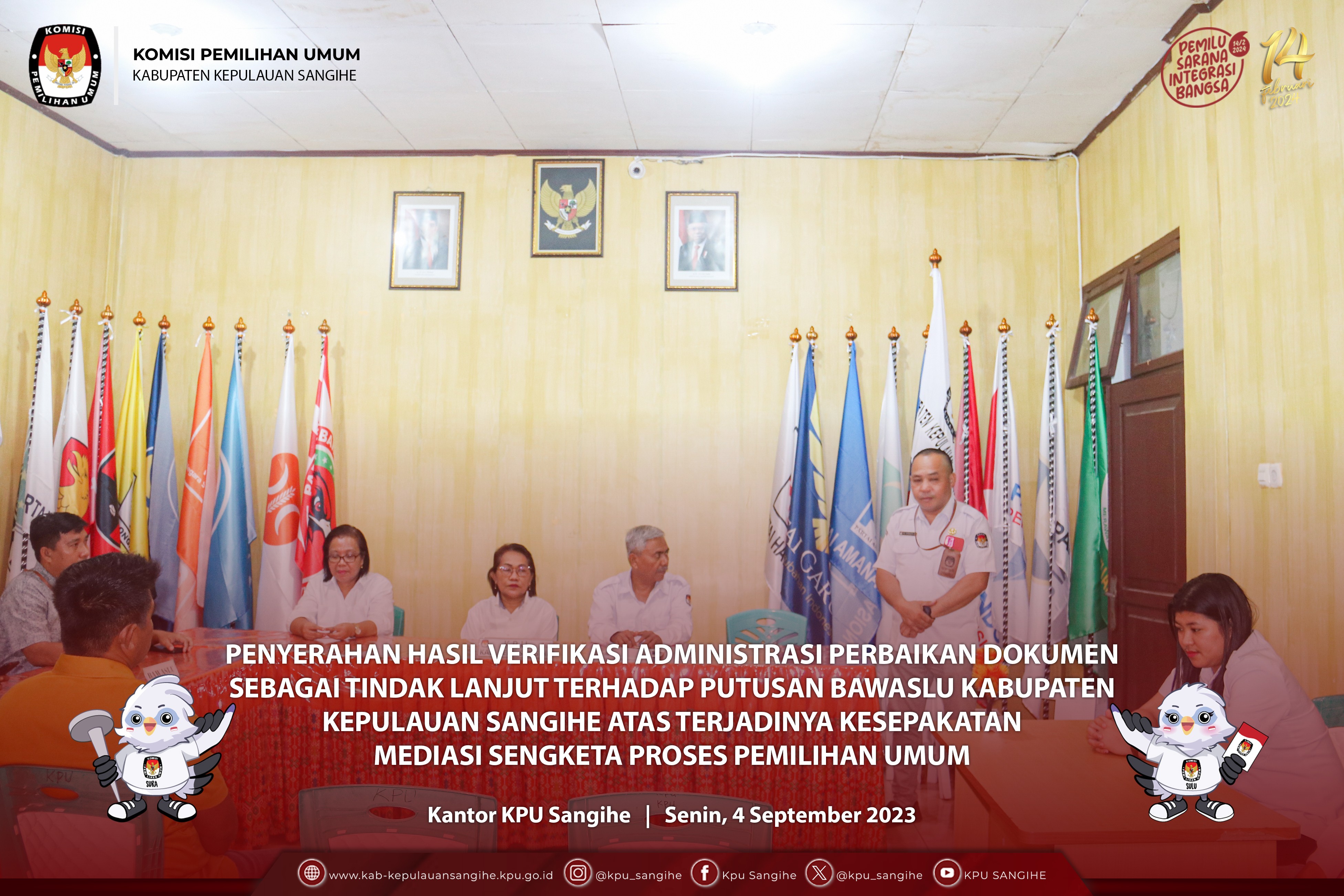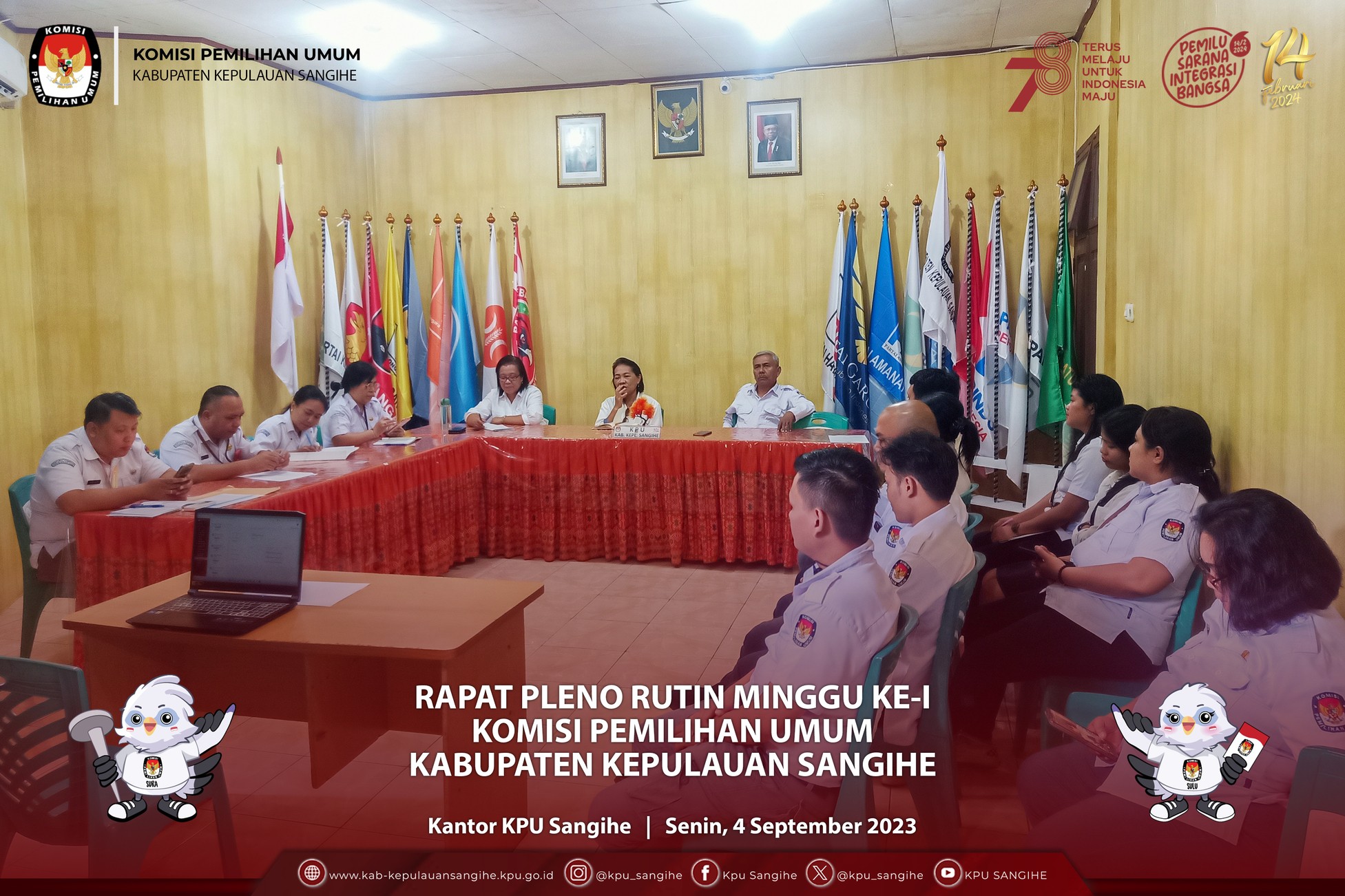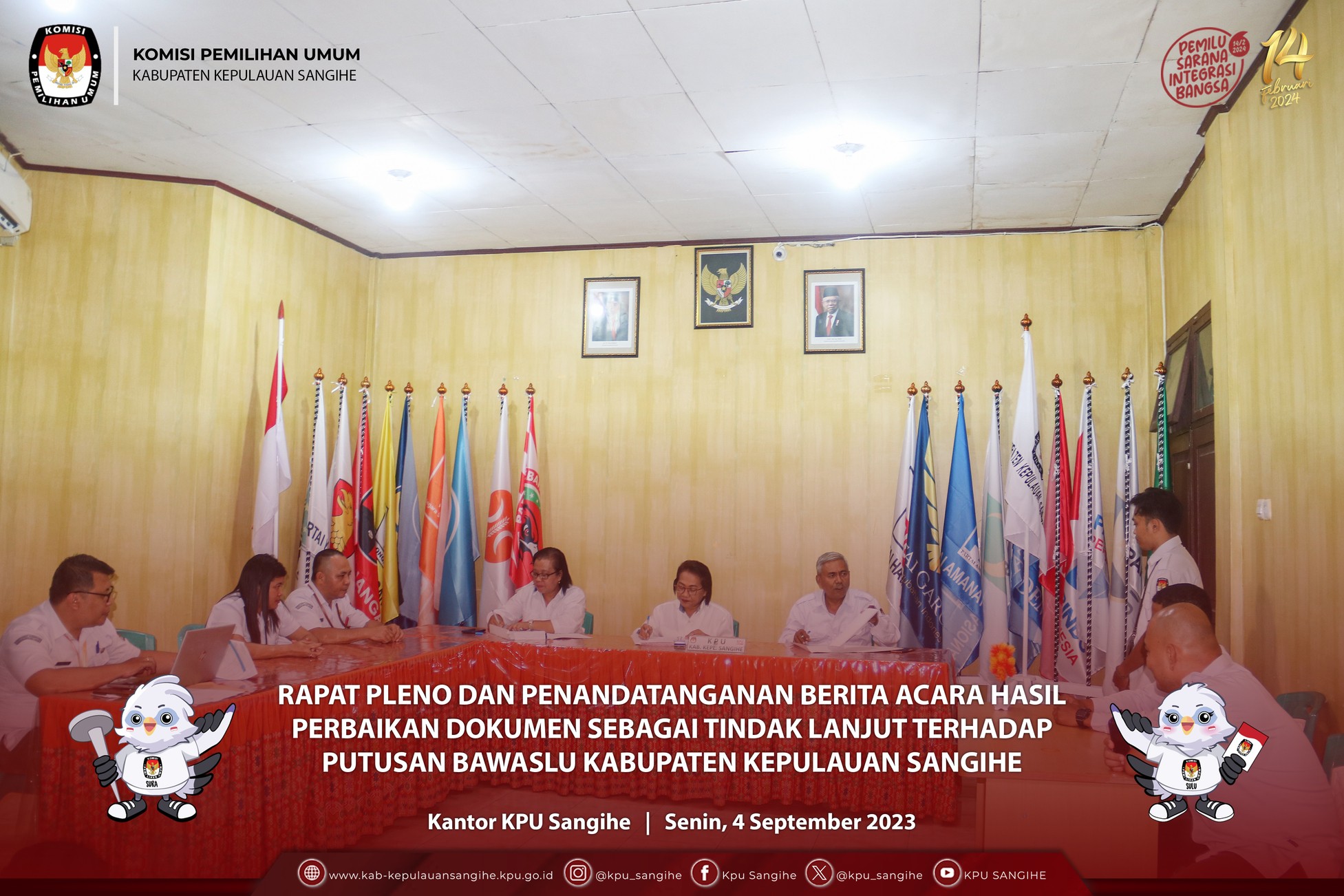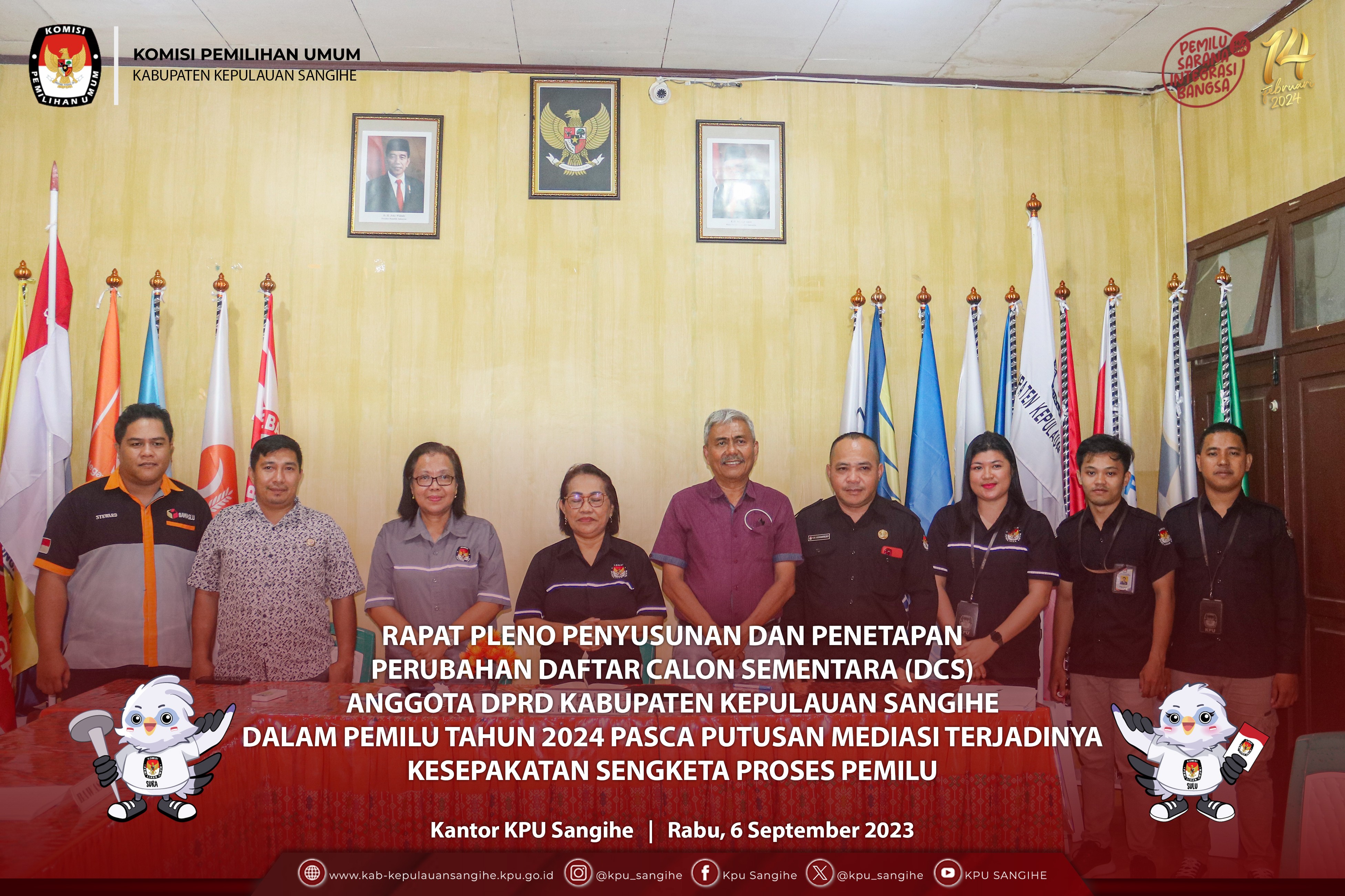 #TemanPemilih, KPU Sangihe menggelar Rapat Pleno Penyusunan dan Penetapan Perubahan Daftar Calon Sementara (DCS) Anggota DPRD Kabupaten Kepulauan Sangihe dalam Pemilu Tahun 2024 Pasca Putusan Mediasi Terjadinya Kesepakatan Sengketa Proses Pemilu. Rabu (6/9/2023).