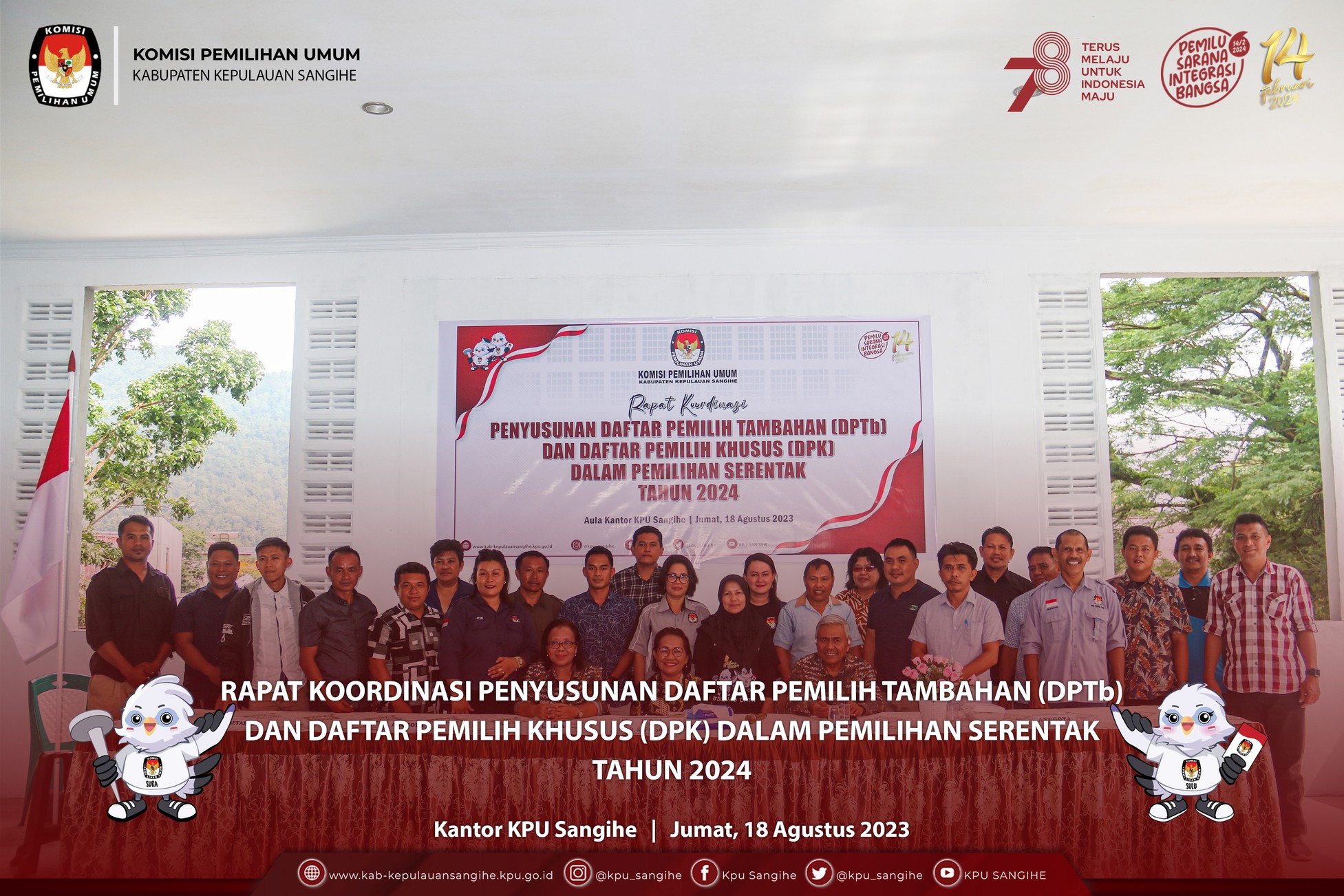 #TemanPemilih, KPU Sangihe telah menyelenggarakan Rapat Koordinasi Penyusunan Daftar Pemilih Tambahan (DPTb) dan Daftar Pemilih Khusus (DPK) dalam Pemilihan Serentak Tahun 2024. di Aula Kantor KPU Sangihe, Jumat (18/8/2023).