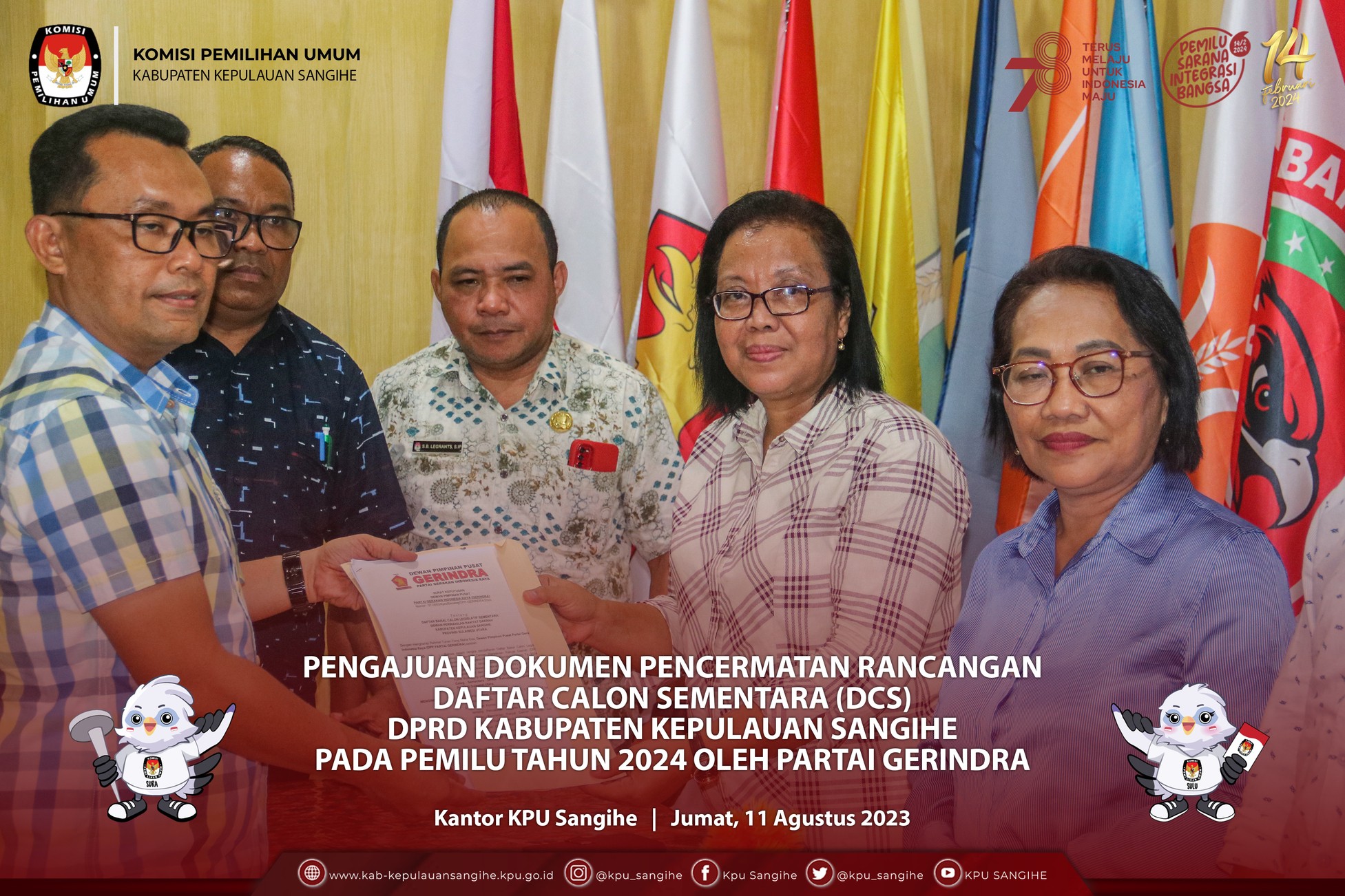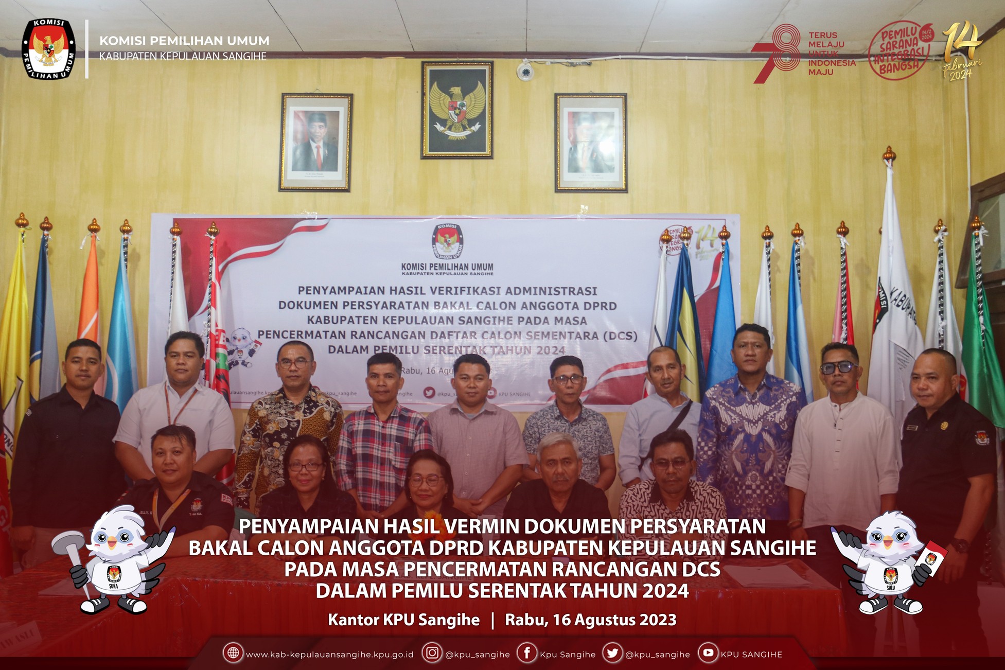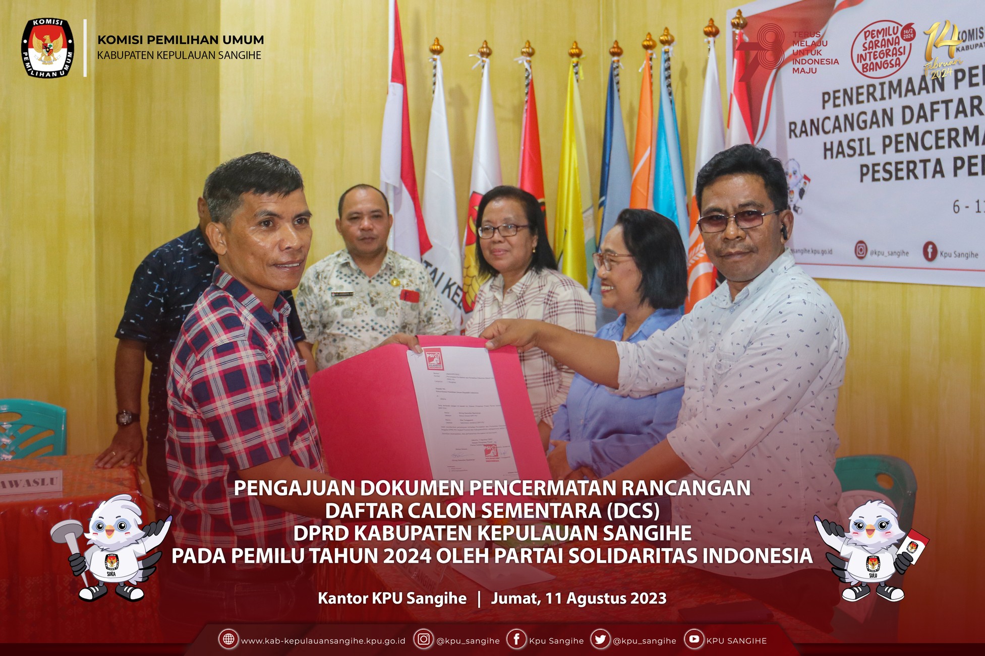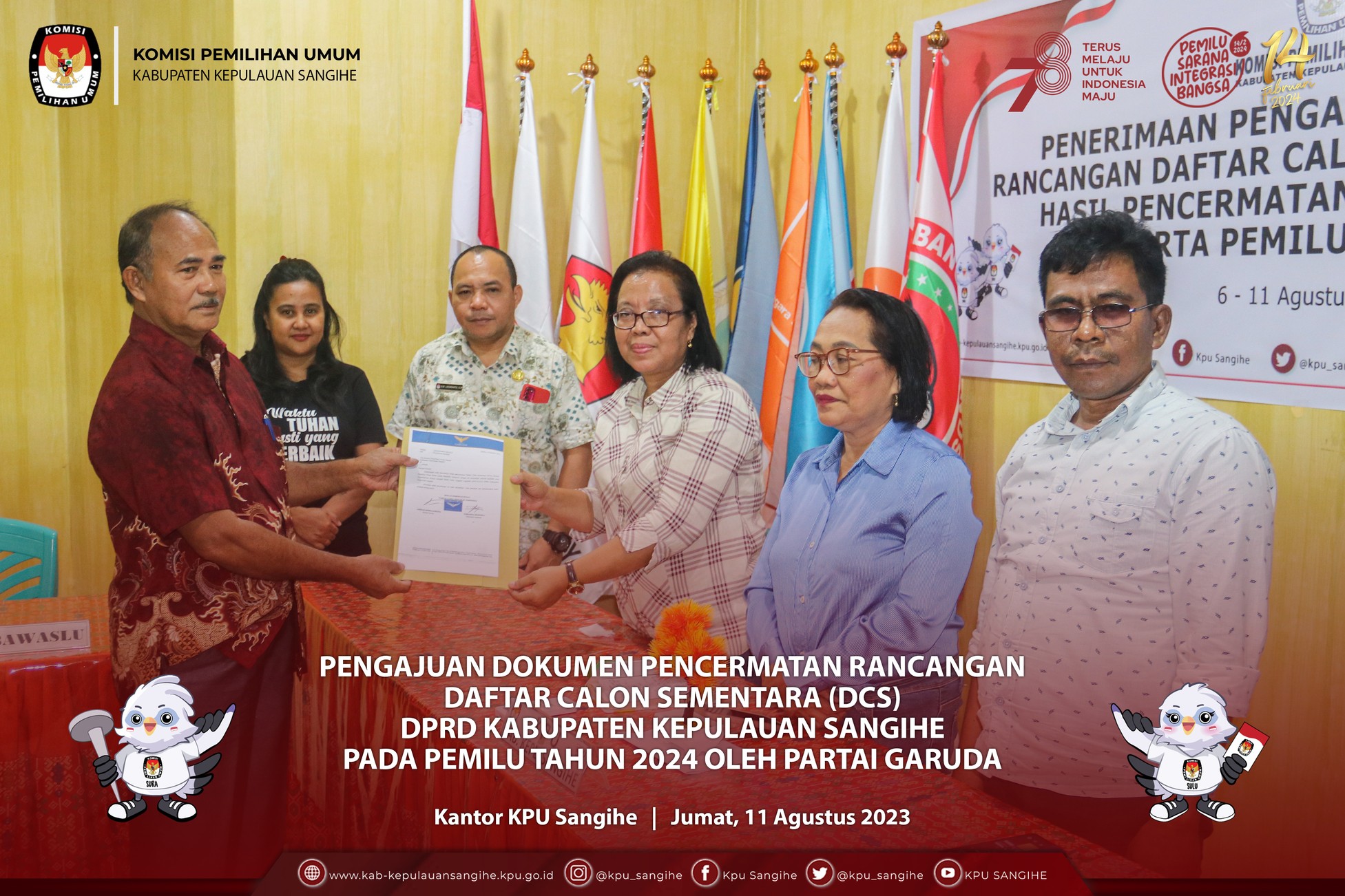 Komisi Pemilihan Umum (KPU) Kabupaten Kepulauan Sangihe menerima Pengajuan Perbaikan Dokumen Persyaratan Bakal Calon Anggota DPRD Kabupaten Kepulauan Sangihe pada Pemilu Tahun 2024 dari Partai Garuda, Jumat (11/8/2023).