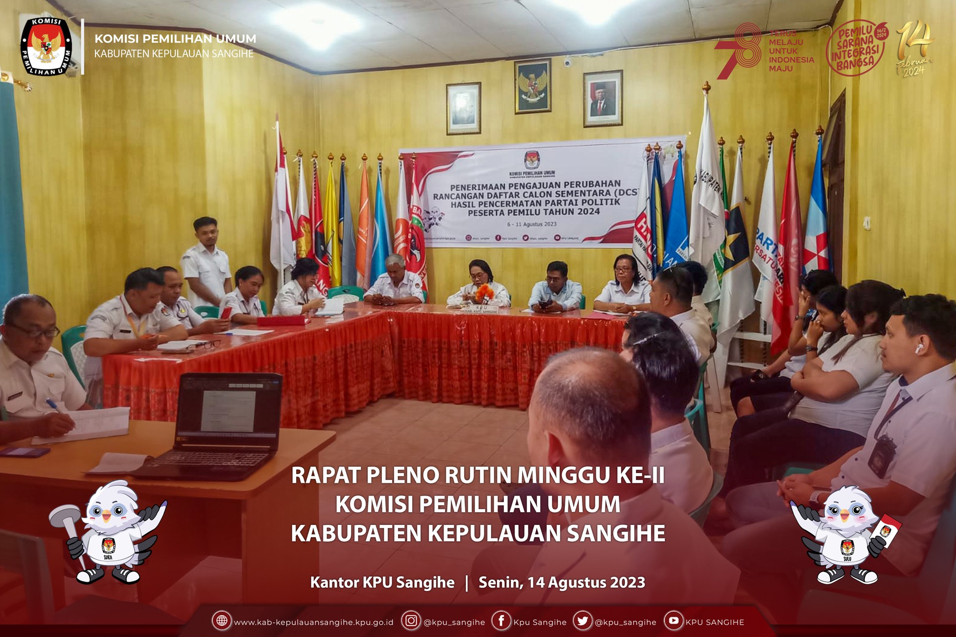 Delegasi partai diterima oleh Ketua KPU Sangihe Elysee Ph. Sinadia, Anggota KPU Sangihe, Iklam Patonaung dan Srimulyani Benharso, Kasubbag Teknis Penyelenggara Pemilu, Partisipasi dan Hubmas Stanley B. Legrants serta Bawaslu Kabupaten Kepulauan Sangihe.