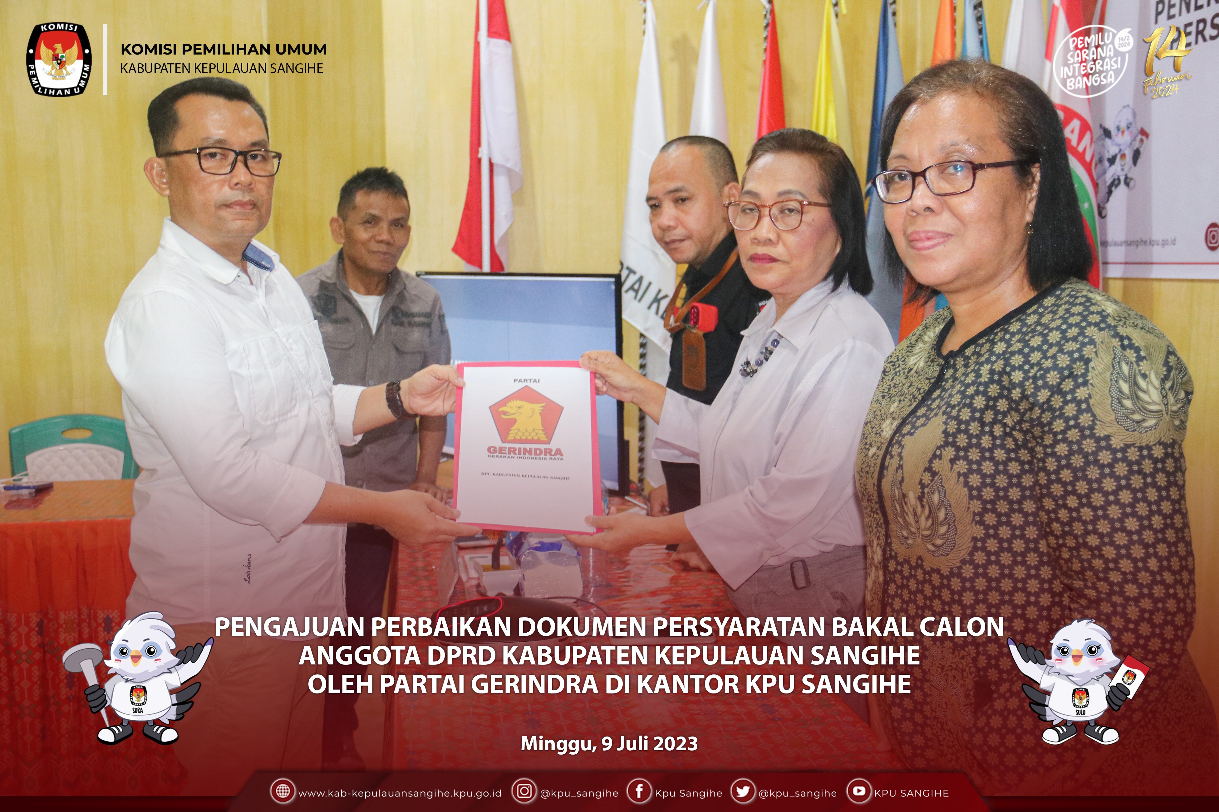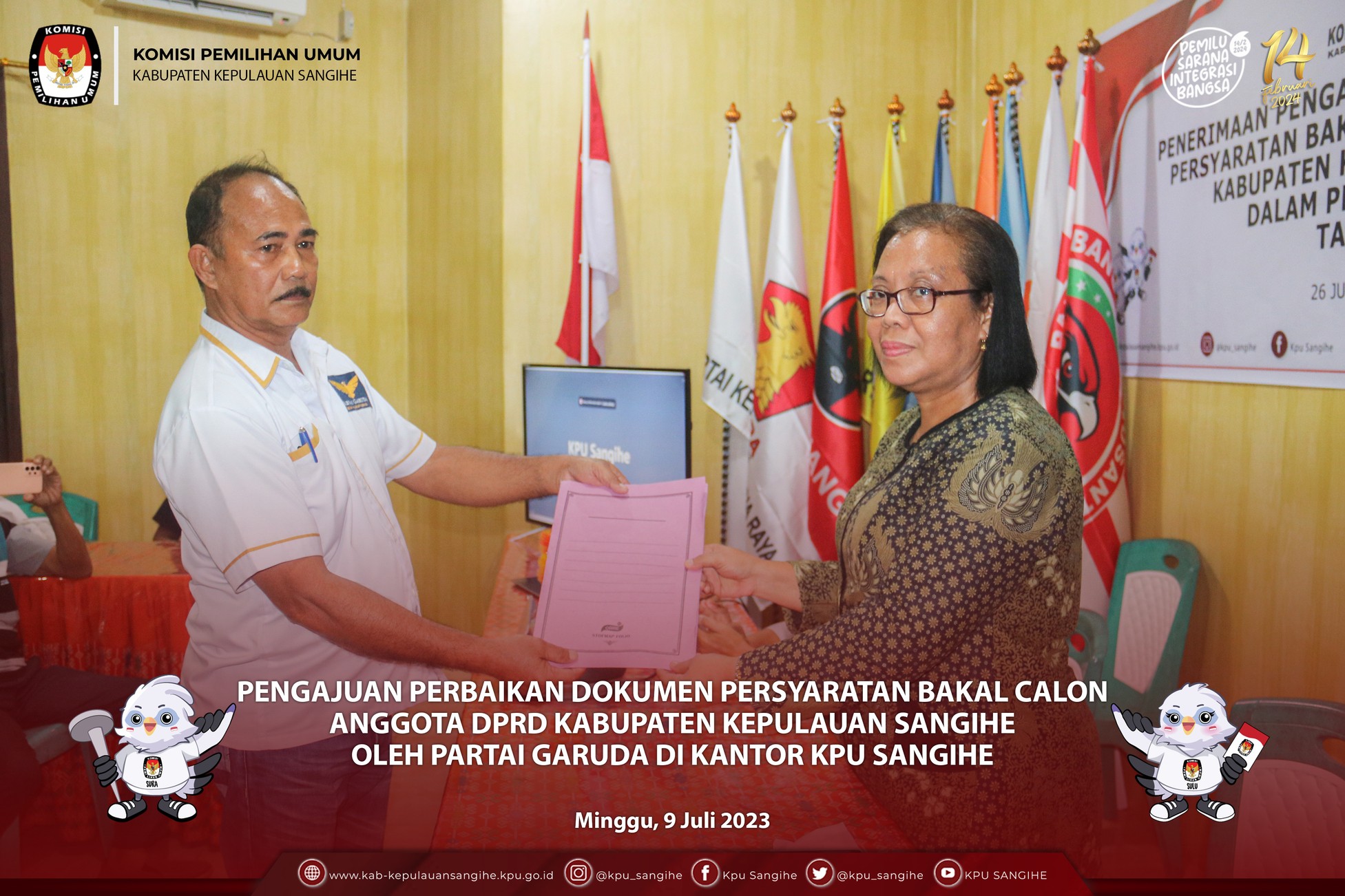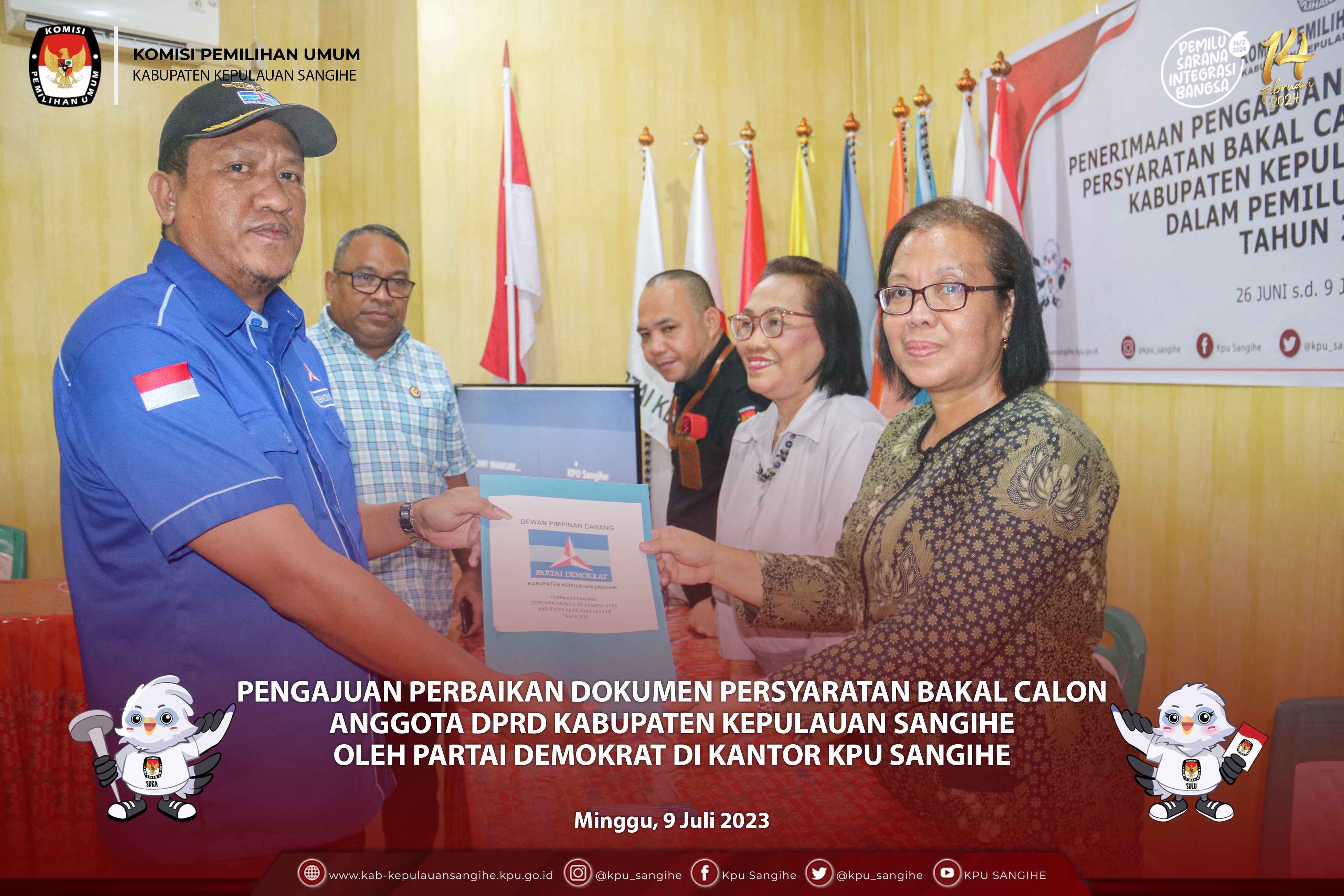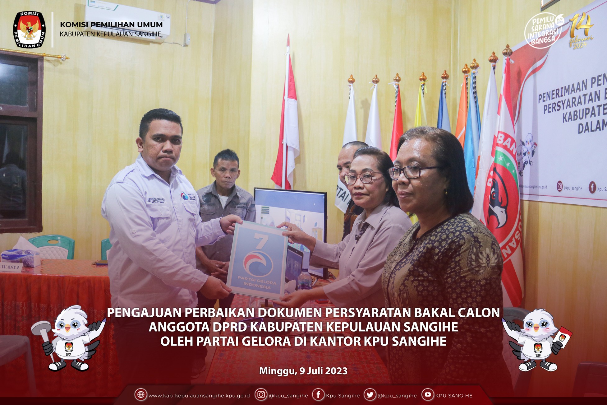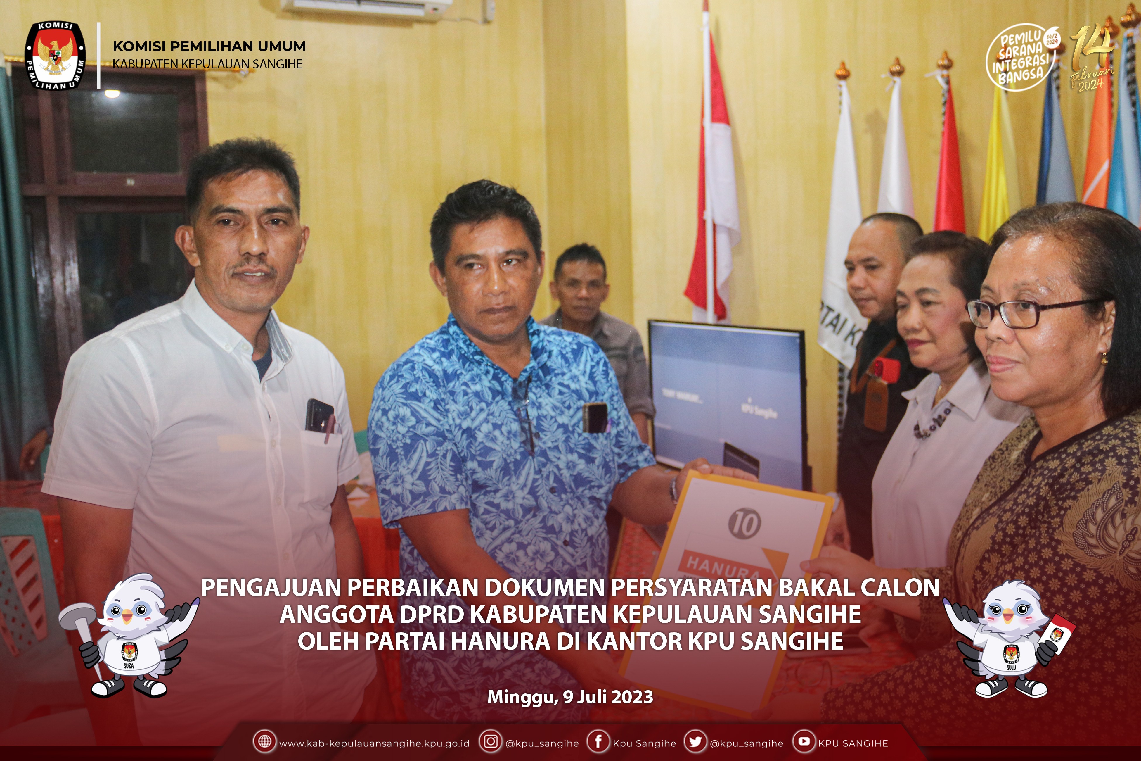 Delegasi partai diterima oleh 4 Komisioner KPU Sangihe serta disaksikan oleh Bawaslu Kabupaten Kepulauan Sangihe, di Ruang Rapat KPU Sangihe.