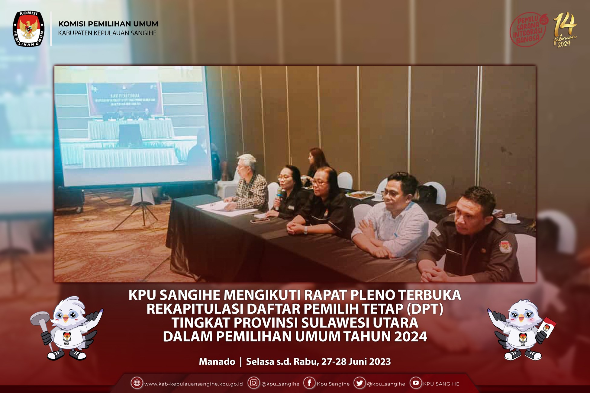 Kepada seluruh masyarakat Kabupaten Kepulauan Sangihe diharapkan untuk berpartisipasi aktif, mengecek apakah sudah terdaftar atau belum di Daftar Pemilih Sementara Tetap (DPT) yang sudah ditempel di papan pengumuman oleh PPS dan PPK di setiap desa/kelurahan atau cek melalui link portal http://cekdptonline.kpu.go.id/
