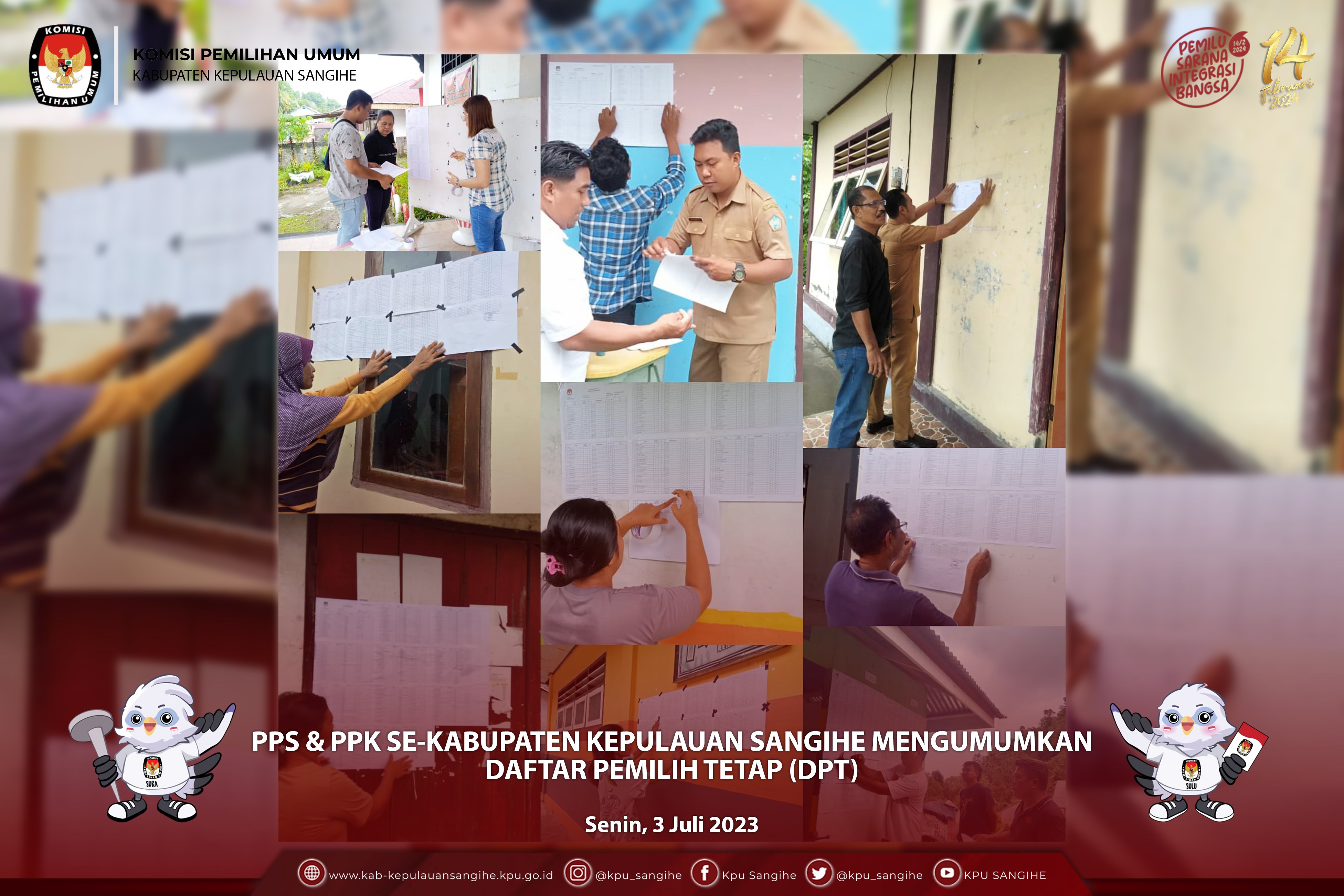 #TemanPemilih, Panitia Pemungutan Suara (PPS) dan Panitia Pemilihan Kecamatan (PPK) se- Kabupaten Kepulauan Sangihe secara serentak mengumumkan Daftar Pemilih Tetap (DPT) di 167 desa/kelurahan melalui papan pengumuman yang ada di setiap desa/kelurahan, Senin (3/7/2023).