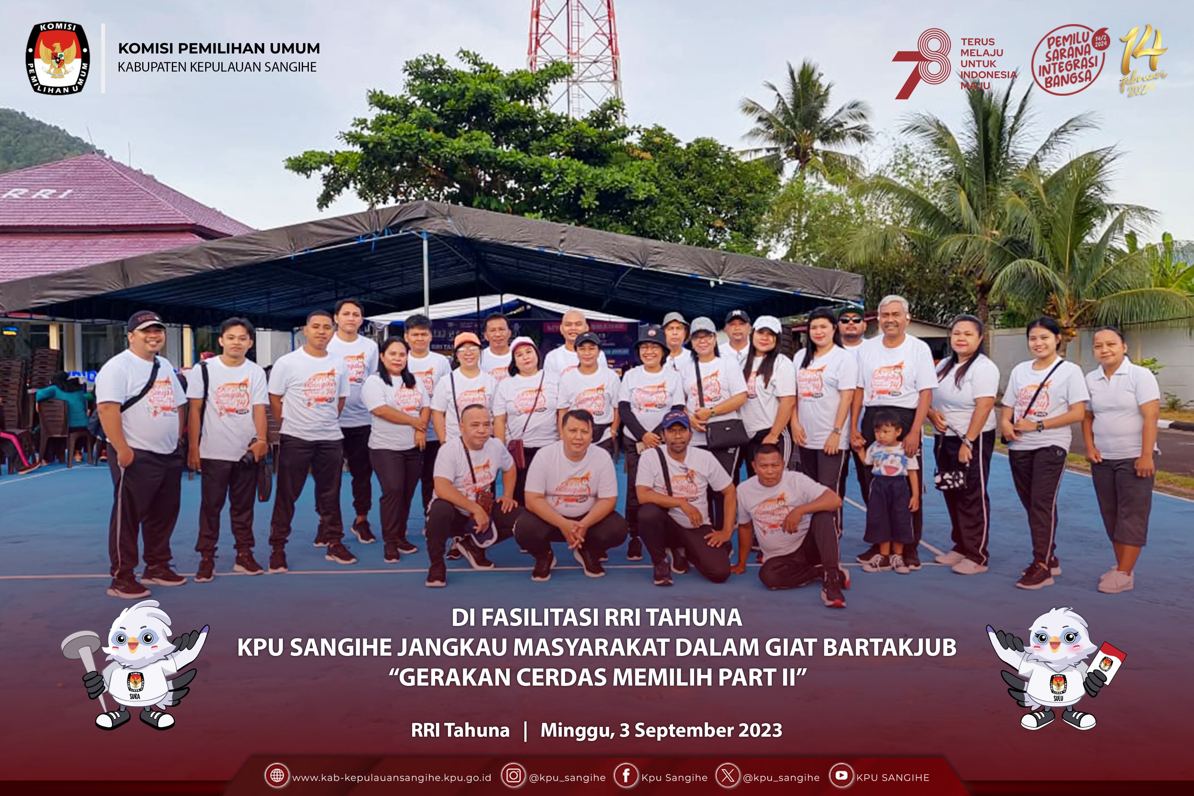Giat bertakjub "Gerakan Cerdas Memilih Part II" dihadiri oleh perwakilan Lanal Tahuna, KPU Sangihe, perwakilan Bawaslu Sangihe, perwakilan perwakilan Pajak Tahuna, Ibu-ibu PKK, Ibu-ibu Majelis Taklim, Siswa-siswi SMK Negeri 1 Tahuna dan Masyarakat sekitar RRI Tahuna.