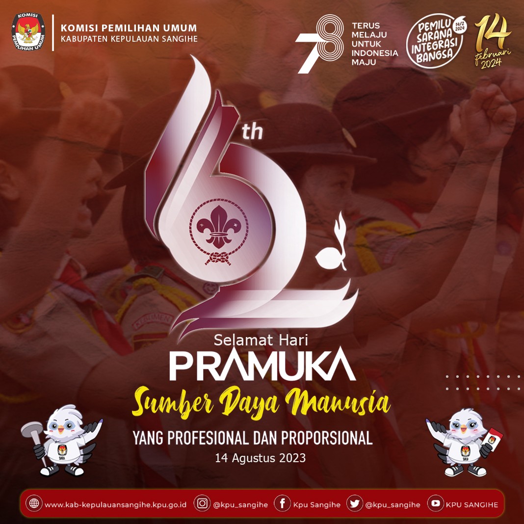 #TemanPemilih, KPU Sangihe mengucapkan Selamat memperingati Hari Pramuka ke-62 untuk seluruh Pramuka di Indonesia, ayo baktikan diri pada lingkunganmu. Tetaplah teguh mengabdi dan tetaplah semangat melayani.
