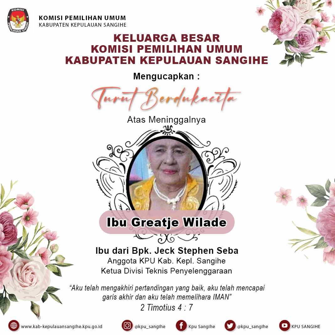 #TemanPemilih, segenap keluarga besar KPU Sangihe mengucapkan duka cita mendalam atas meninggalnya Ibu Greatje Wilade, Ibu dari Bpk. Jeck Stephen Seba, Kadiv Teknis Penyelenggaraan.