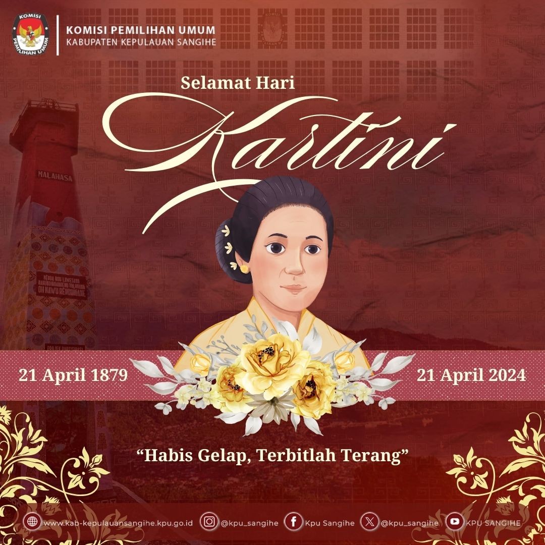 Tahuna, kab-kepulauansangihe.kpu.go.id - RA Kartini merupakan sumber inspirasi adanya perubahan, cahaya terang terhadap kesetaraan wanita Indonesia di masa kini. Dengan tulisannya, menjadi suara bagi yang terpinggirkan. Terima Kasih Kartini, teladan dan keberanianmu inspirasi bagi kami untuk meraih mimpi-mimpi. Selamat hari Kartini, untuk semua wanita Indonesia!