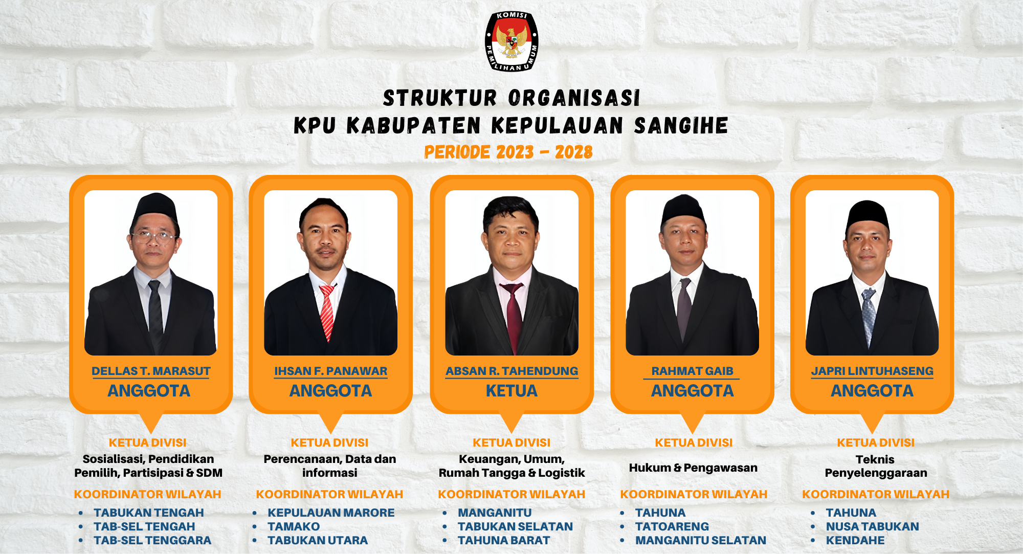 - Absan Reformasi Tahendung (Ketua/Ketua Divisi Keuangan, Umum dan Logistik)